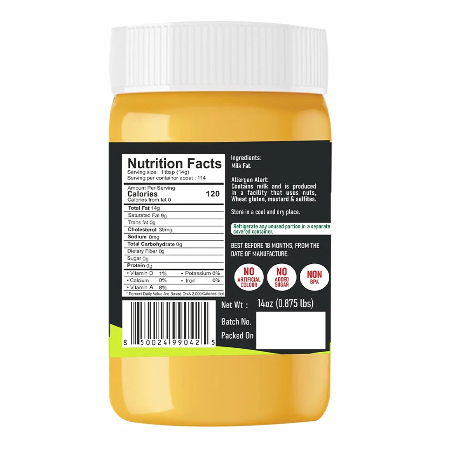 - Nature's Fruits Pure Ghee is a rich source of CLA & Butyric Acid which helps with digestion and provides extra nutrition.