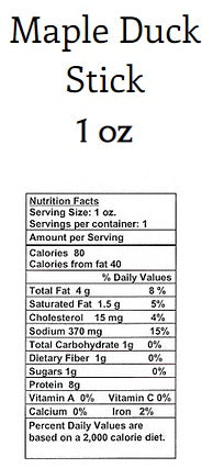 Prepared with 100% real USDA inspected duck, this snack contains 8 grams of protein and only 80 calories - a perfect blend of taste and nutrition. Infused with a mouthwatering mix of maple syrup and savory flavors.