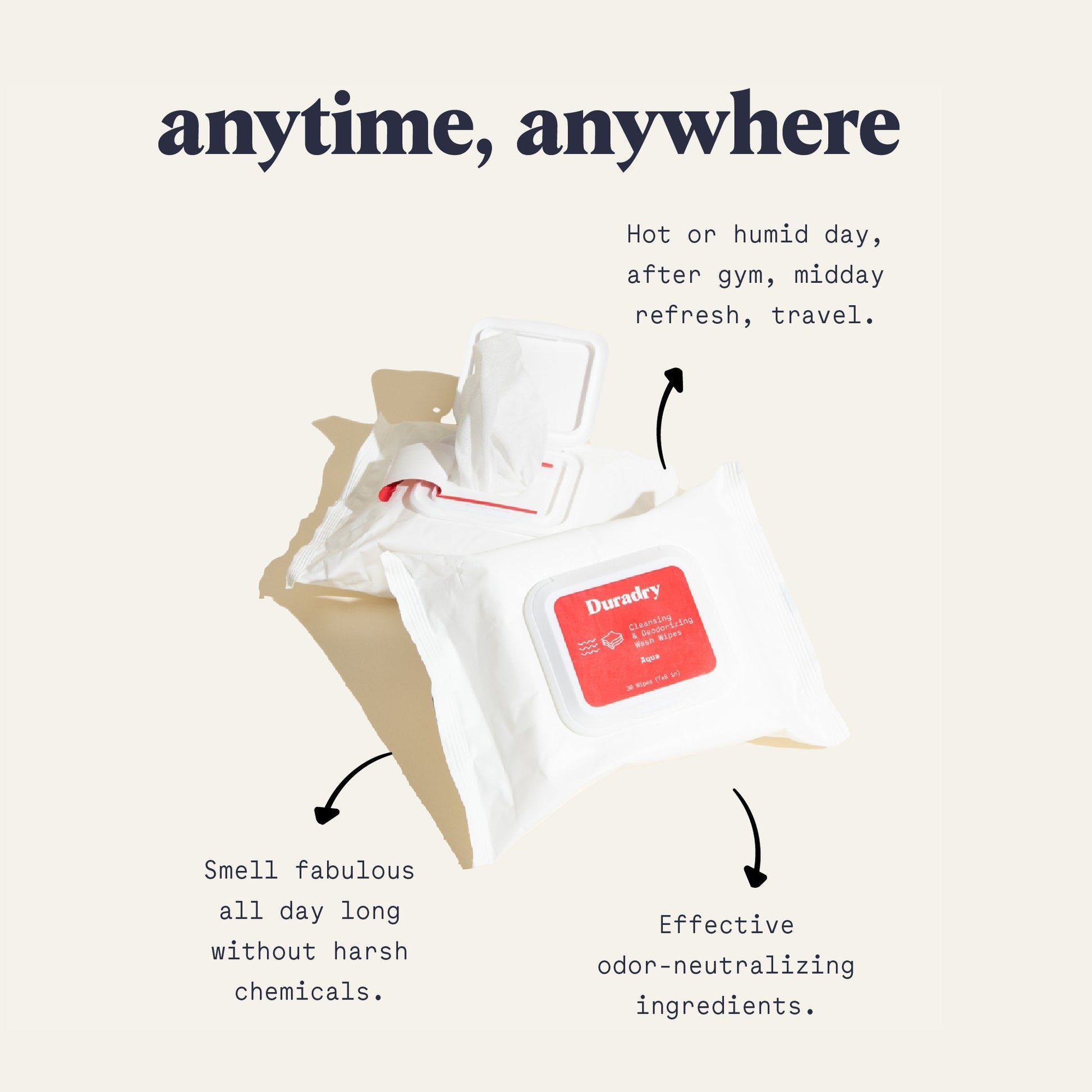 Duradry Duradry Wash Wipes by Duradry wholesale product delivery near me | | Fulfilled by our friends at Duradry• Our go-to for refreshing after the gym, on a hot day in the city, or those long travel days• Perfect to deodorize & cleanse on-the-go• Removes after sweat gunk and odor-producing bacteria.