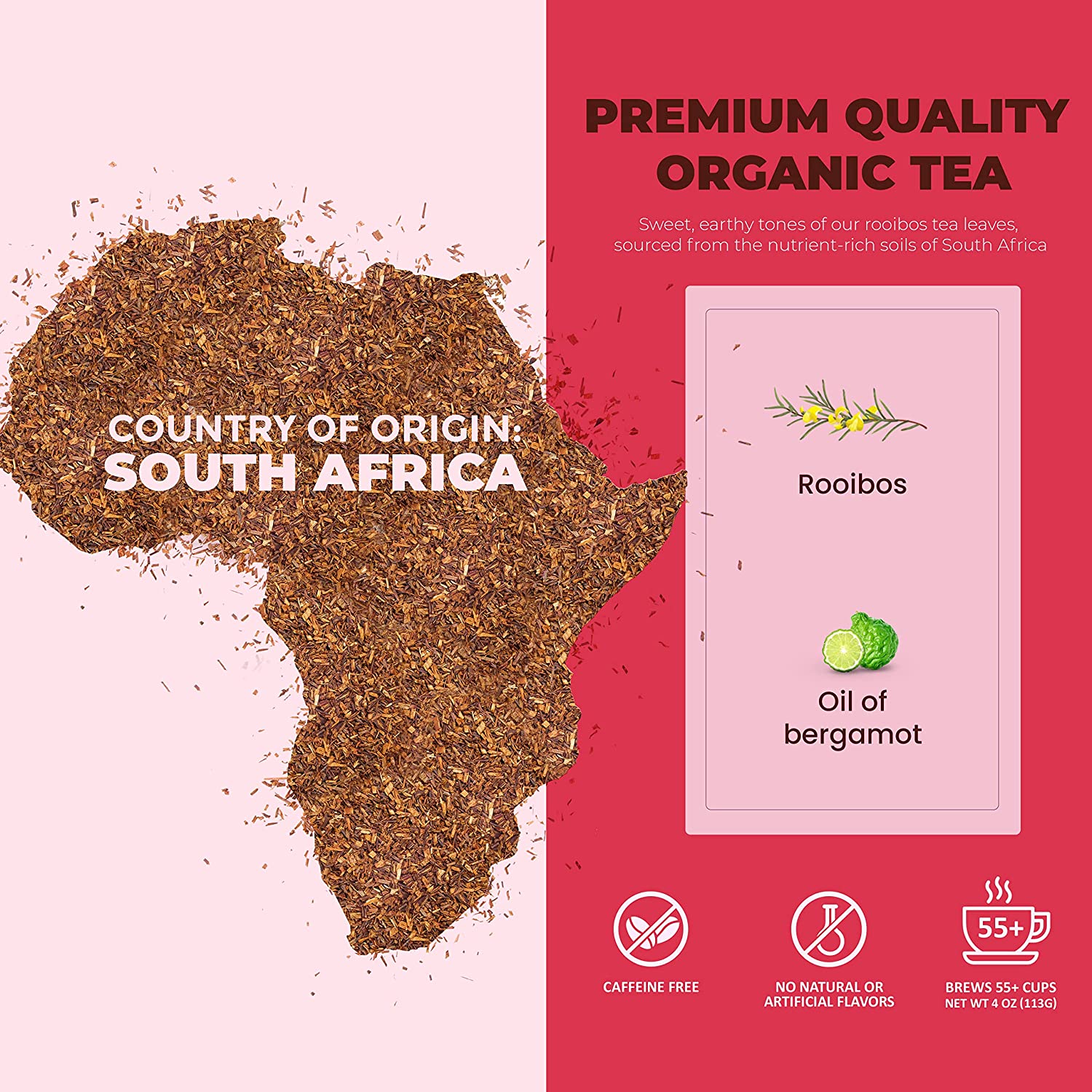 Earl Grey Rooibos Red Tea, Loose Leaf, USDA Organic, Kosher, Caffeine-Free – 4 Oz (113g)