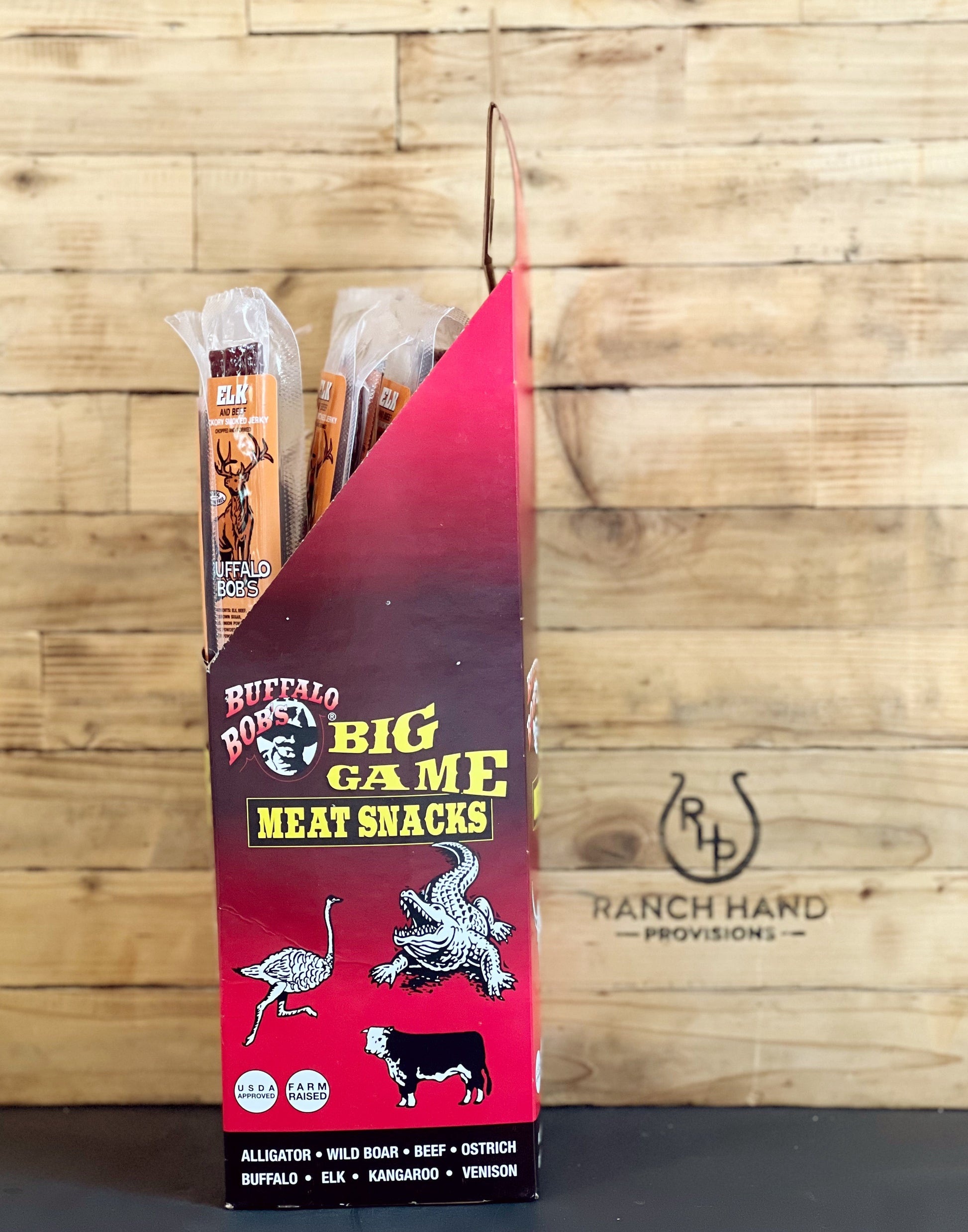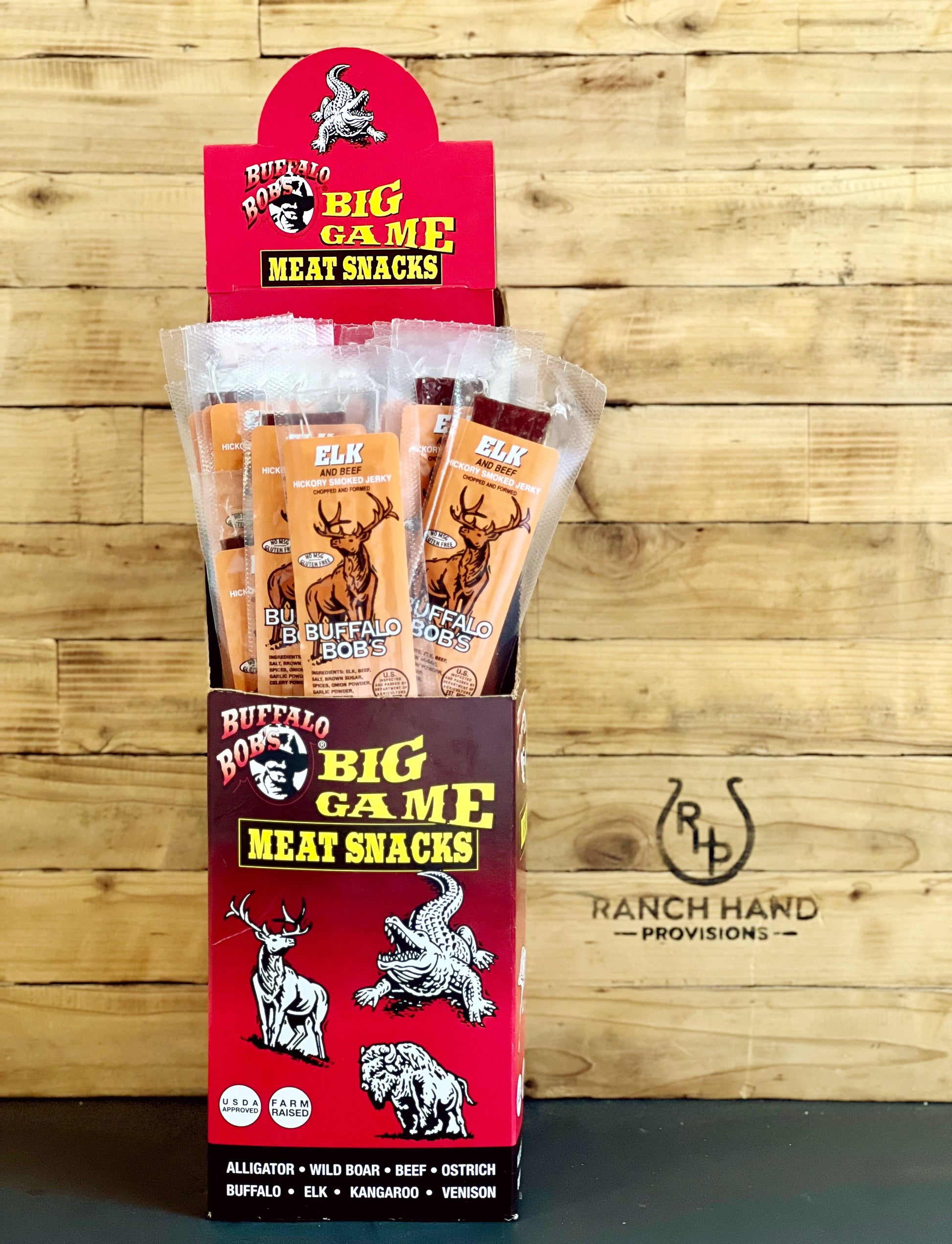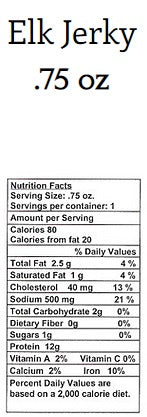 Ingredients: Elk, Beef, Salt, Brown Sugar, Spices, Onion Powder, Garlic Powder, Celery Powder.
