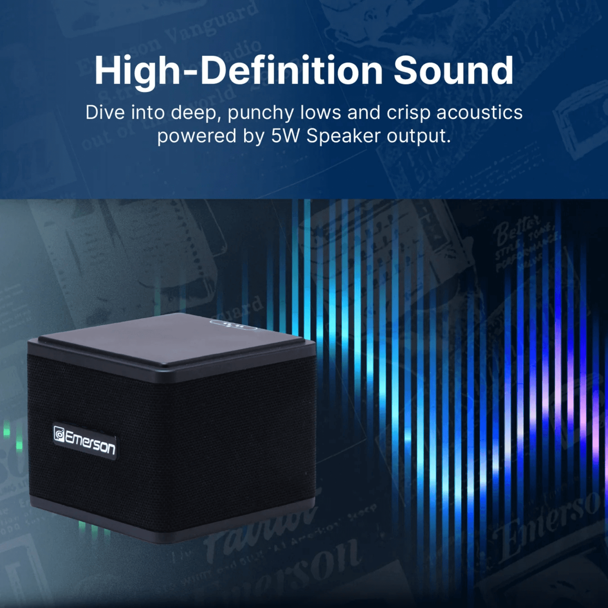 - Instant Connect: After initial Bluetooth pairing, connect all other Emerson EAS-3006 speakers instantly by having each additional speaker touch the other speakers in the designated area