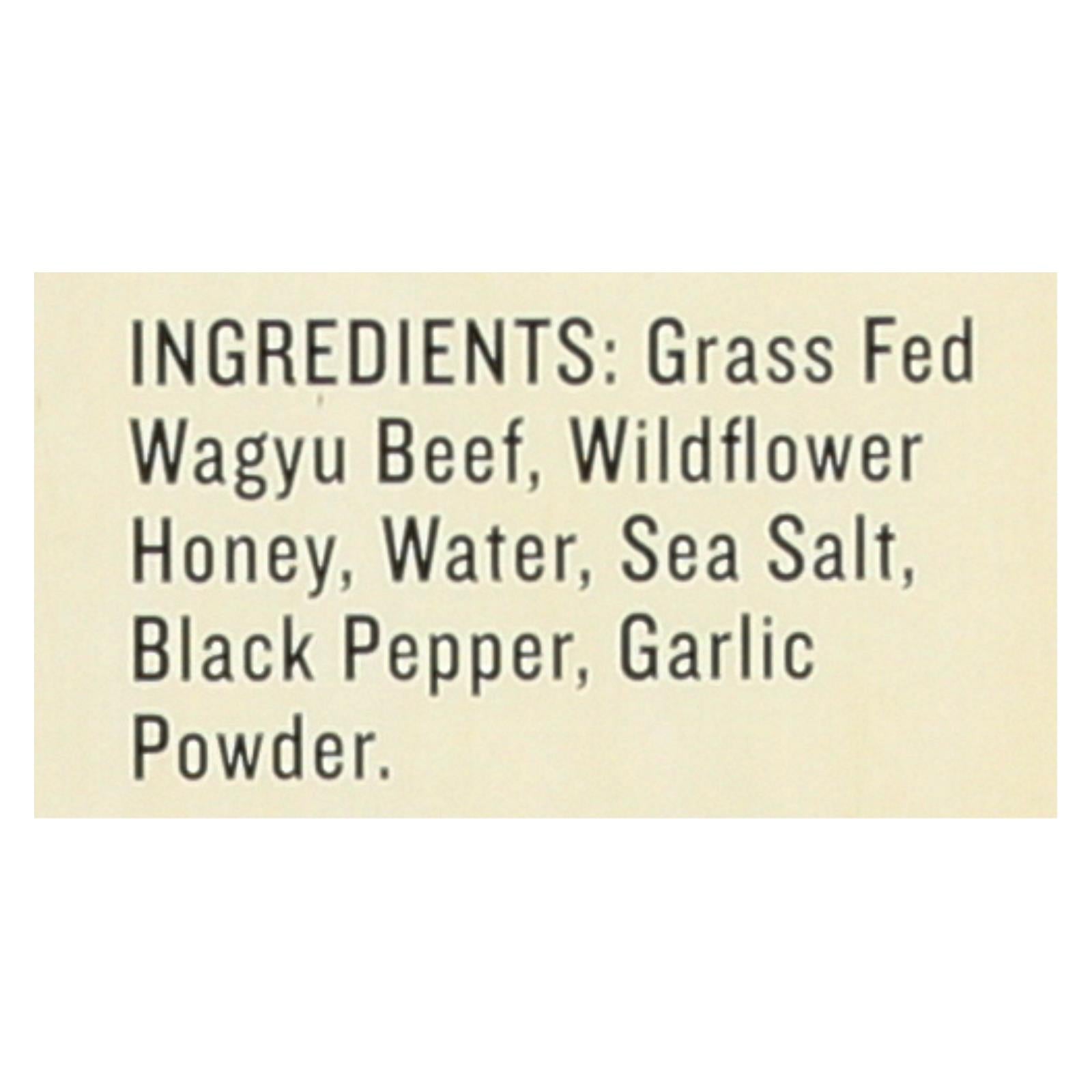 Savor the rich and robust flavors of this premium beef snack, crafted from grass-fed Wagyu beef and seasoned to perfection with wildflower honey, sea salt, black pepper, and garlic powder. Each 0.8 oz packet delivers 6 grams of protein, making it an ideal choice for those looking to add a protein boost to their diet.