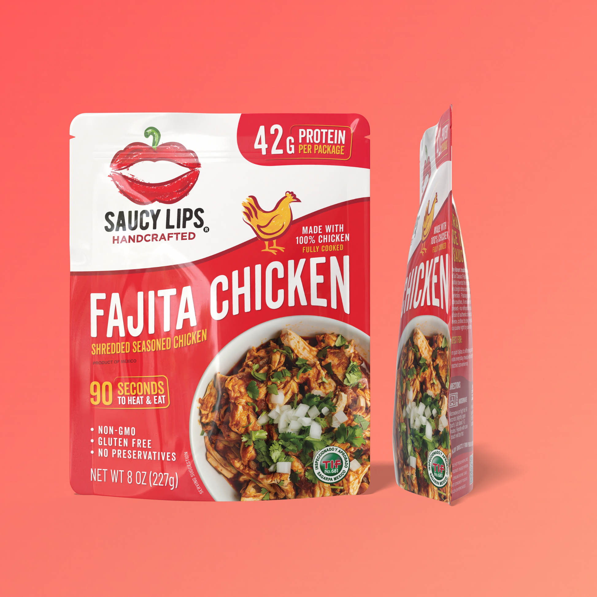 Smoky, citrusy shredded chicken with fire-roasted peppers and bold fajita seasoning. Fully cooked and bursting with 42g of clean protein.
