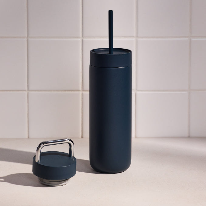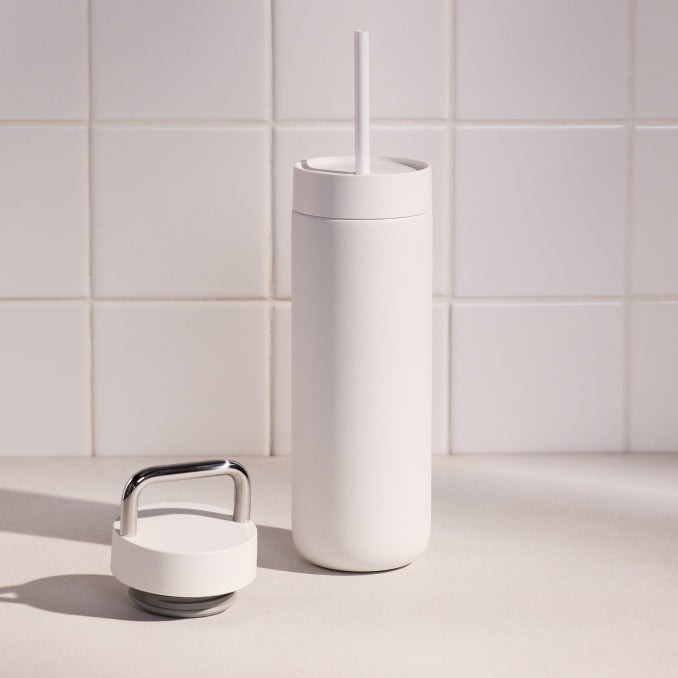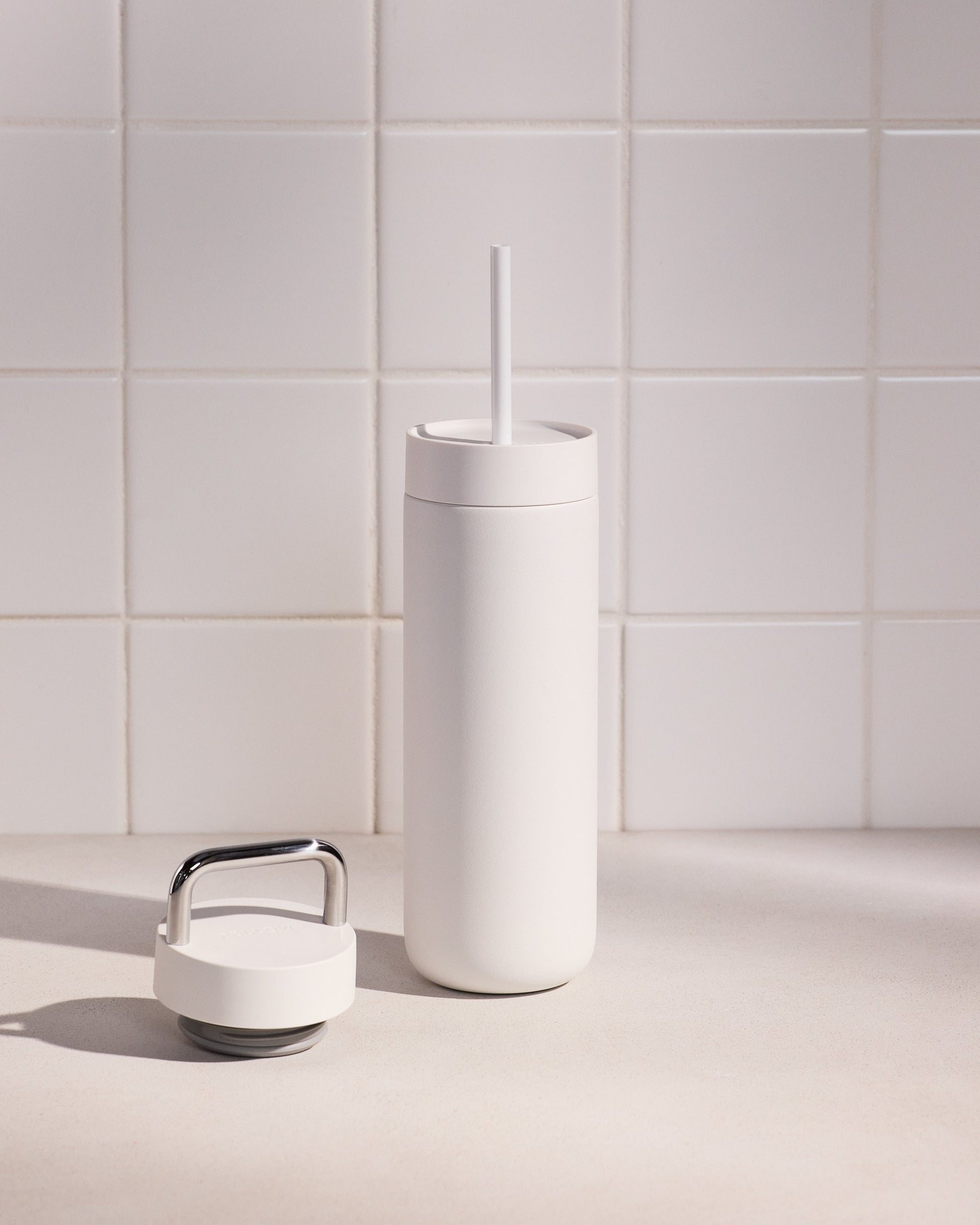 This set includes a 20 oz Carter Carry Water Bottle with two interchangeable lids to suit your sipping situation. Use the leak proof Carry Lid to toss your bottle in your backpack with confidence, and the Cold Lid + Straw for one-handed sipping on the go. Plus, the vacuum insulated body and ceramic interior means your drink will stay cold for up to 24 hours and free of metallic tasting notes. Designed for water, cold brew, kombucha or whatever keeps you cool.