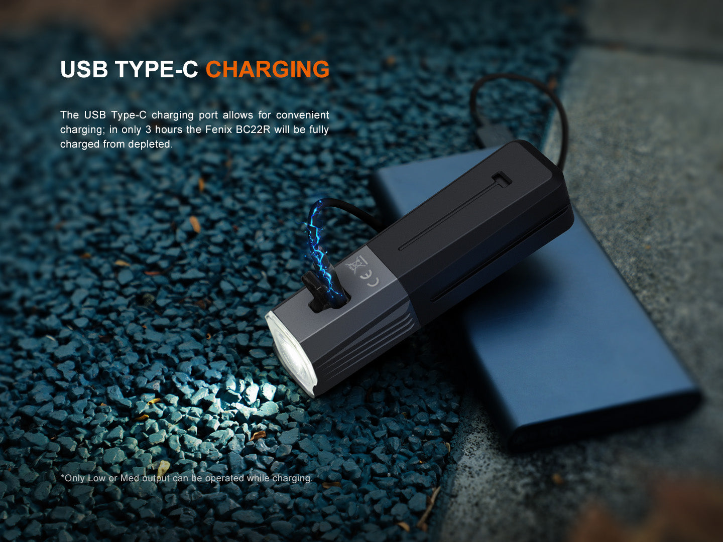 The Fenix BC22R High-Performance Road Bike Light delivers a powerful 1400-lumen output with a broad 512-foot flood beam, ensuring clear visibility while its anti-glare cut-off line protects pedestrians and oncoming traffic for your safety and theirs. Compact and aerodynamically designed, it mounts easily on the top or bottom of handlebars with a quick-release system for effortless use.