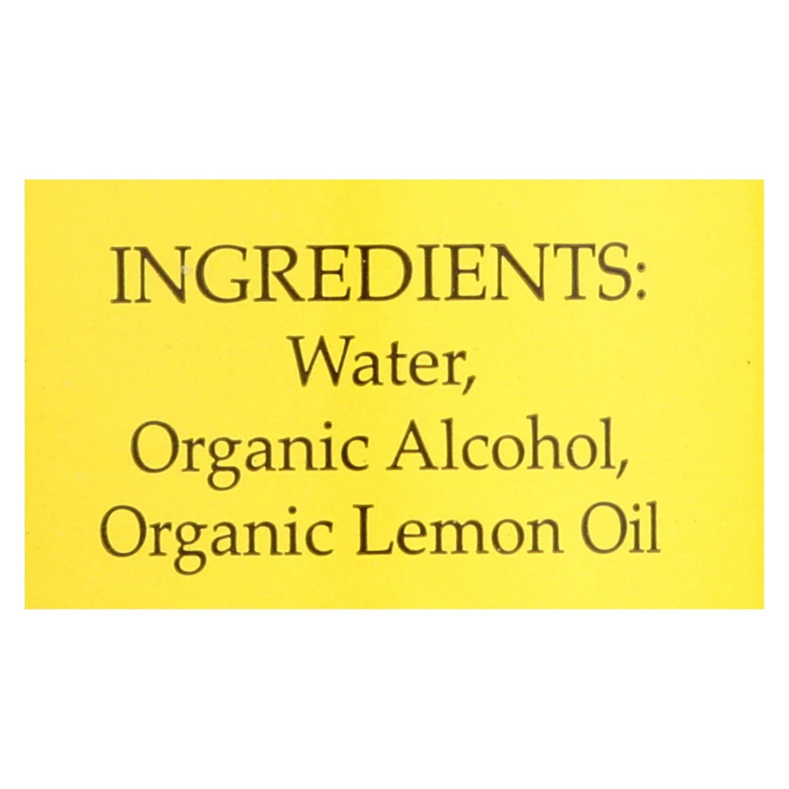 - Made with organic alcohol and organic lemon oil.