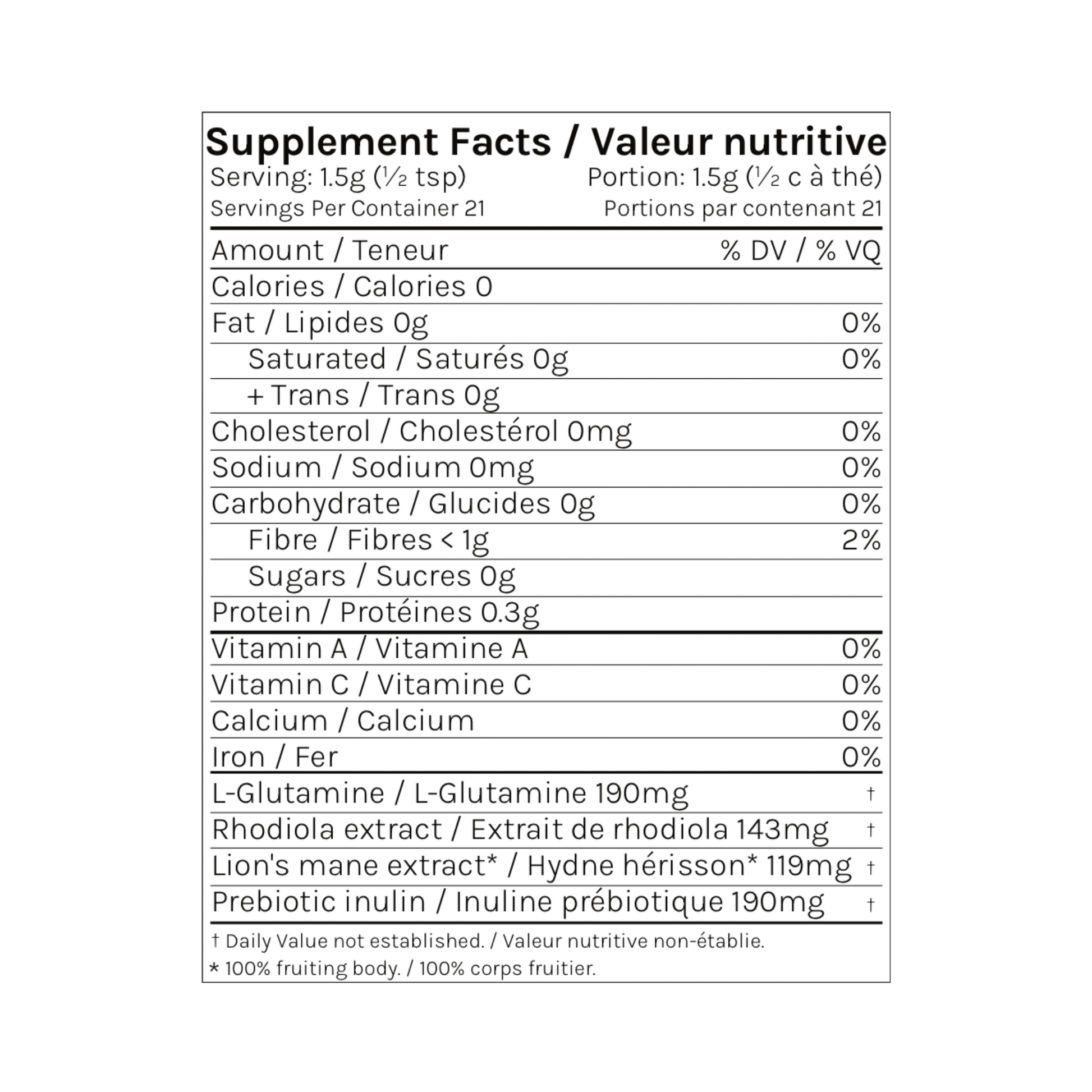 For mind, focus and clear skin. Helps reduce fatigue and stress, maintain sustained energy, and improve gut flora wellness.*