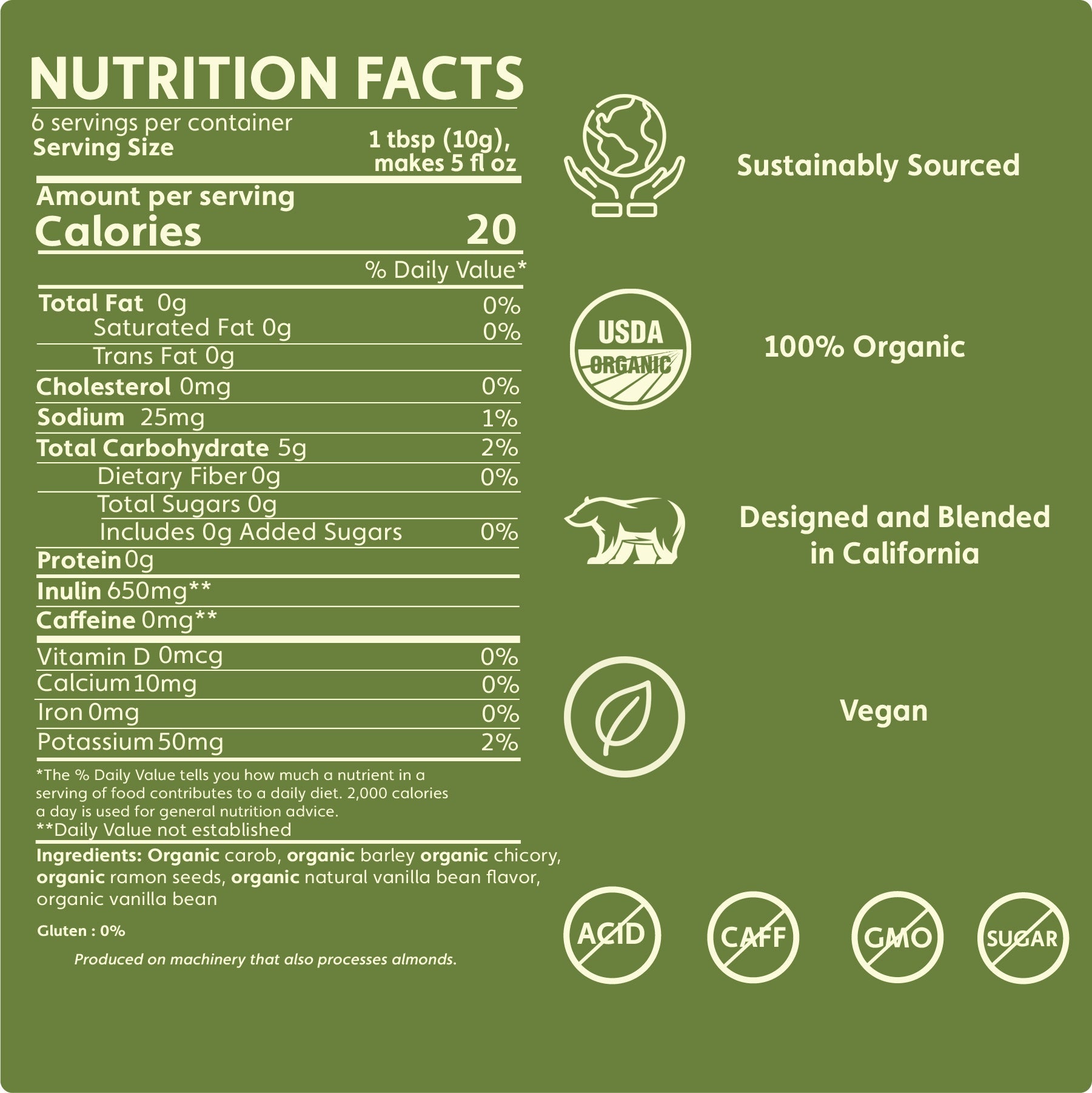 Fragrant, creamy vanilla beans are blended with dark roasted ramón seeds and chicory root to produce that unparalleled smooth French Vanilla taste.