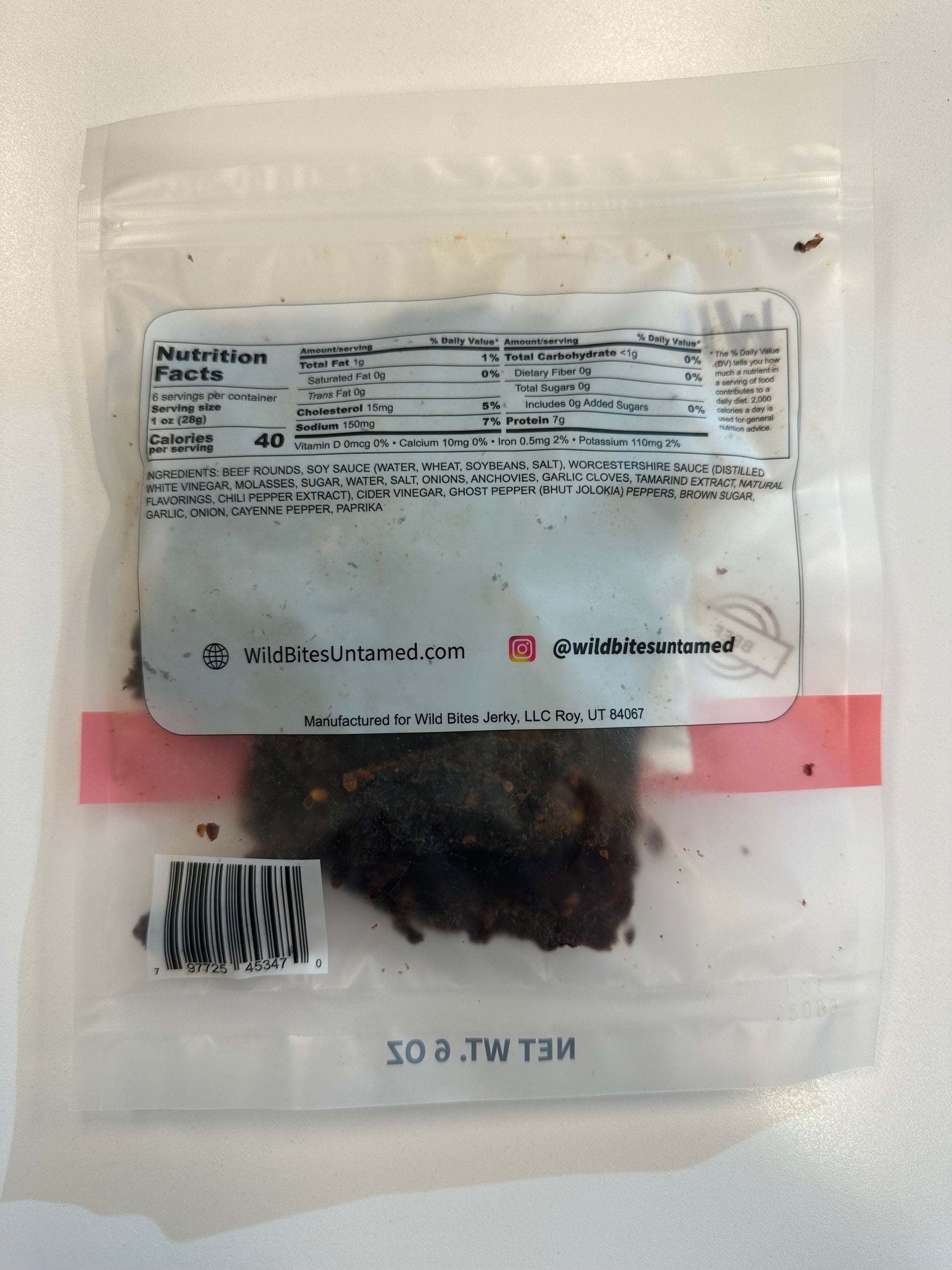 Dare to go wild with Ghost Howl. Infused with ghost pepper heat and smoky undertones, this 6oz bag brings intense fire and bold beef flavor without being overwhelming.