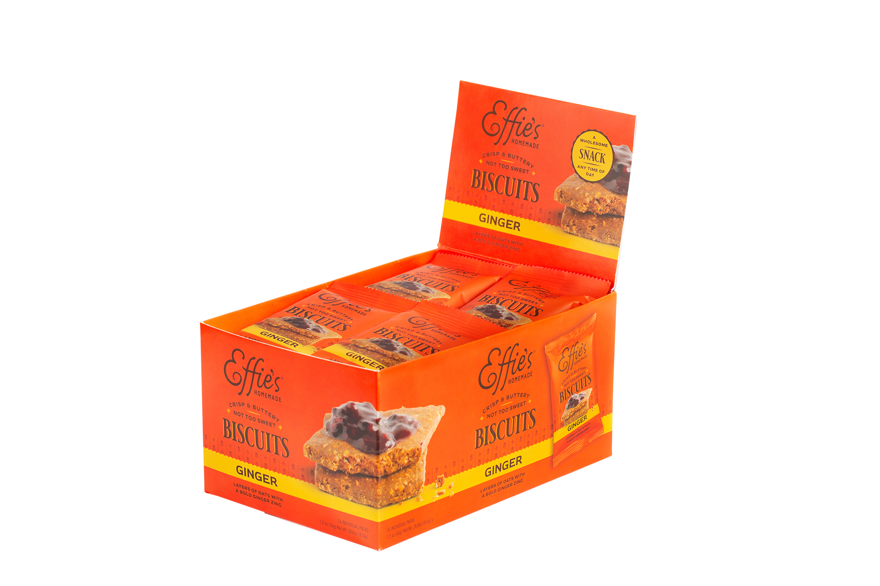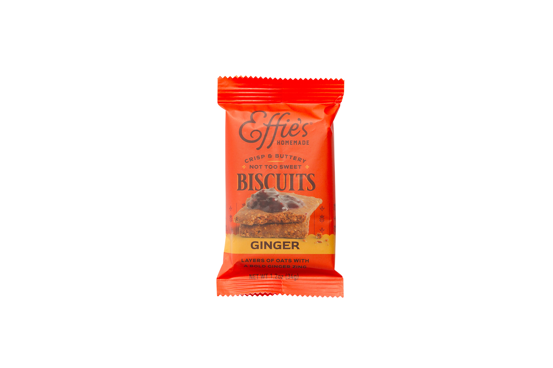 Crisp and buttery, with a peppery kick, Effie’s Homemade Ginger Biscuits are the perfect wholesome snack in a convenient, single-serve pack. Perfectly portioned for life on the go, this single-serve pack is ideal for snacking any time of day—whether you're traveling, at your desk, or just need a cozy pick-me-up.