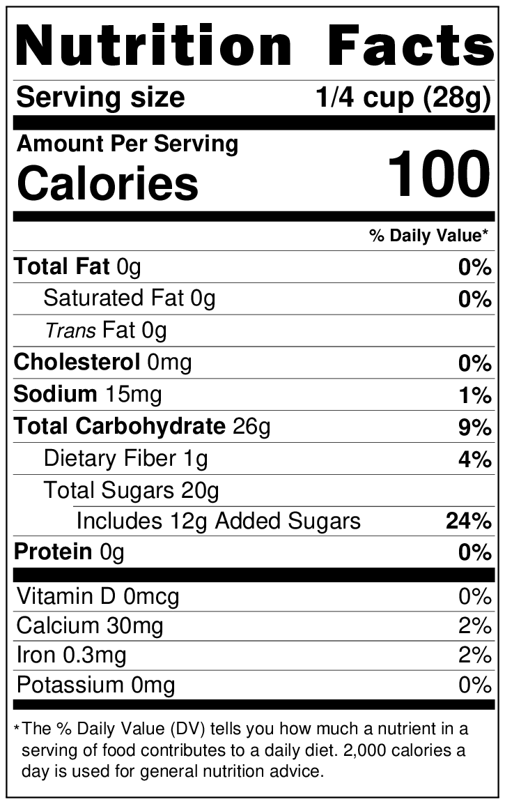 Allergen Statement: Product packed in a facility that also handles nuts, peanuts, soy, sesame, and wheat. 12 oz and 5 lb sizes only.