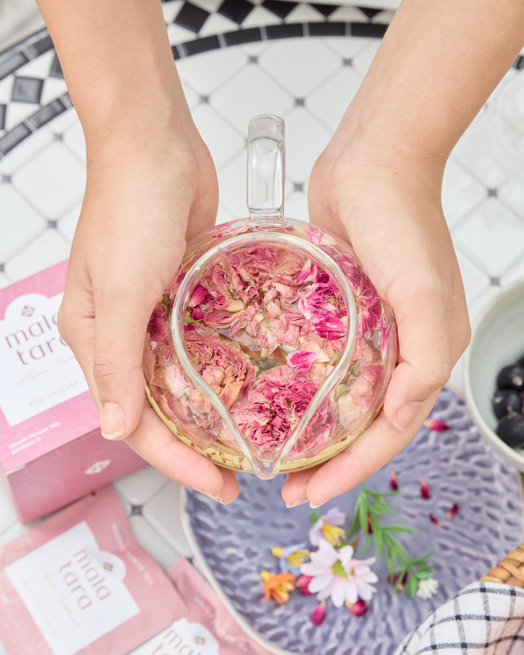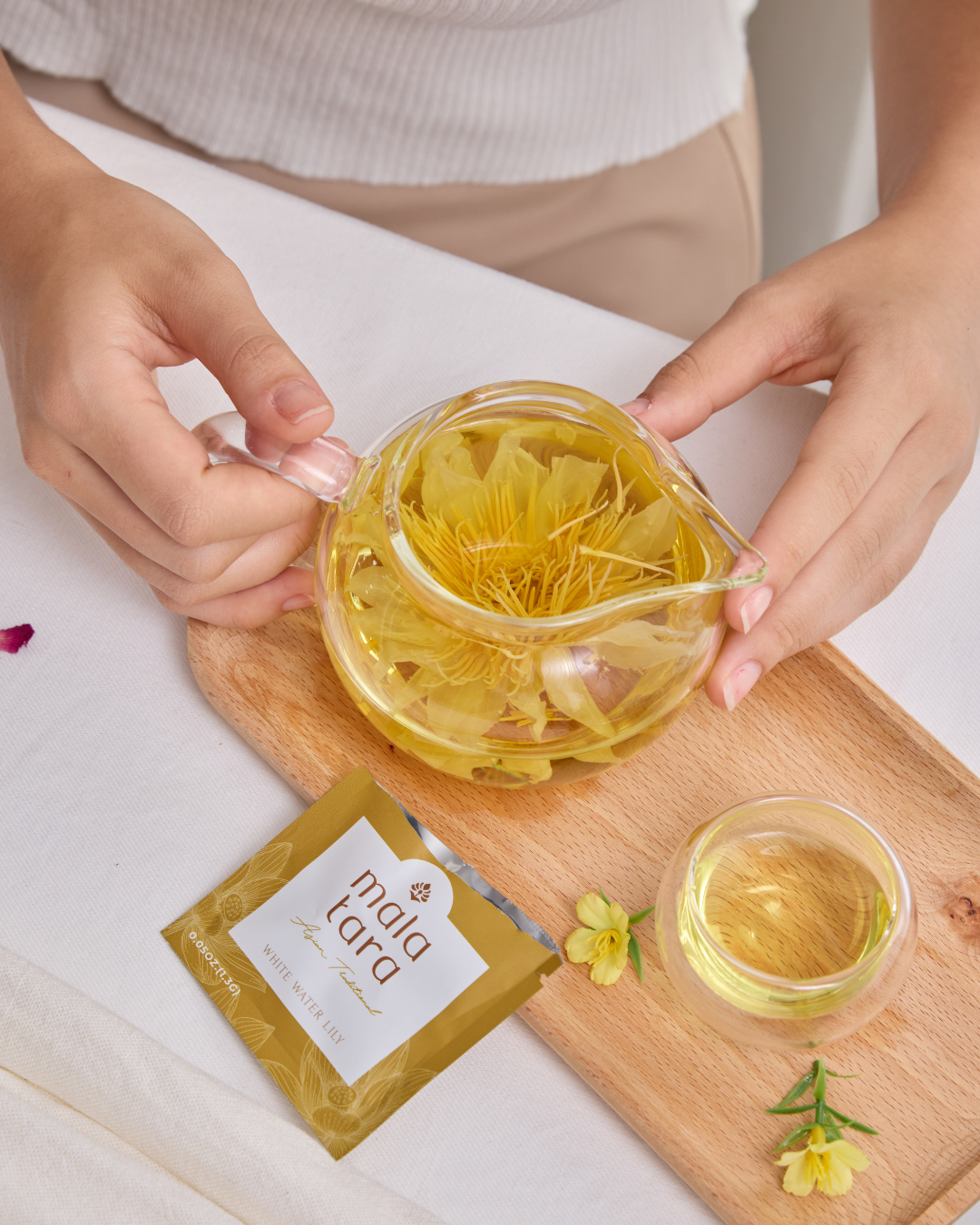- Brewing whole flower tea