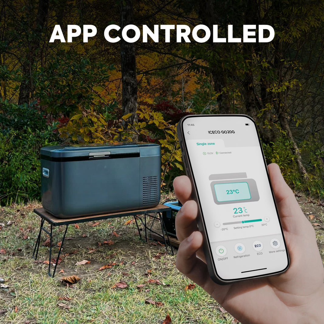 Flexible Dual Zone Design- Portable fridge with detachable partition Design, GO20 provides 2 separate zones for refrigeration and freezing, which can be operated with 2 digital panels at the same time.