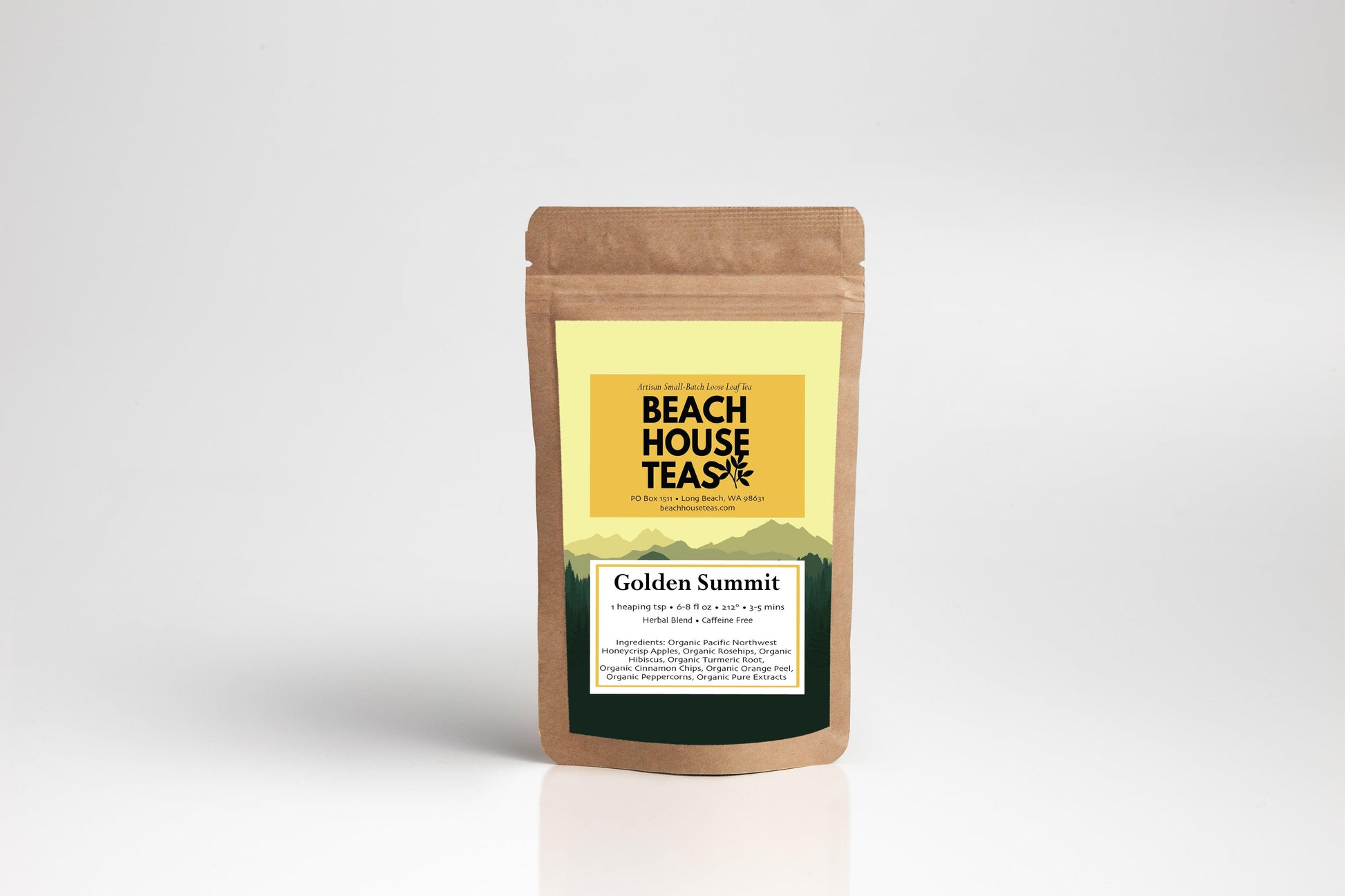 Elevate your senses and embark on a sensory journey with our Golden Summit Tea, a flavorful herbal blend that captures the spirit of the Pacific Northwest. This tea features the powerful medicinal herb, turmeric, which infuses the blend with its remarkable properties.