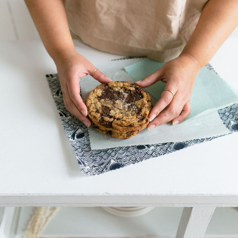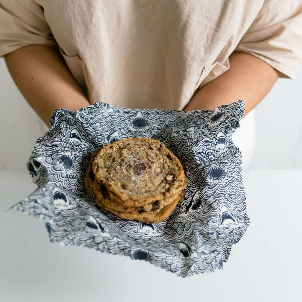 Goldilocks Goods Beeswax Food Wraps: Sharks Set of 3 by Goldilocks Goods wholesale product delivery near me | | Fulfilled by our friends at Goldilocks GoodsGood for your food. Good for the earth.lasts 1 year · keeps food fresher · compostableThe average person uses over 2000 sq. ft. of plastic wrap every year. Join the more than 50,000 people who have made the switch from plastic to Goldilocks Wraps.An all natural, reusable & eco-friendly alternative to plastic wrap in the kitchen. Wash in cool, soapy water. Do not heat.Back by popular demand, the Sharks Set of 3 is a Goldilocks classic!Set of 3 includesLarge 11x14" | Medium 10x10" | Small 6x9"Ingredients100% Cotton | Canadian Beeswax | Tree Rosins | Jojoba OilMade by hand in Victoria, BC.