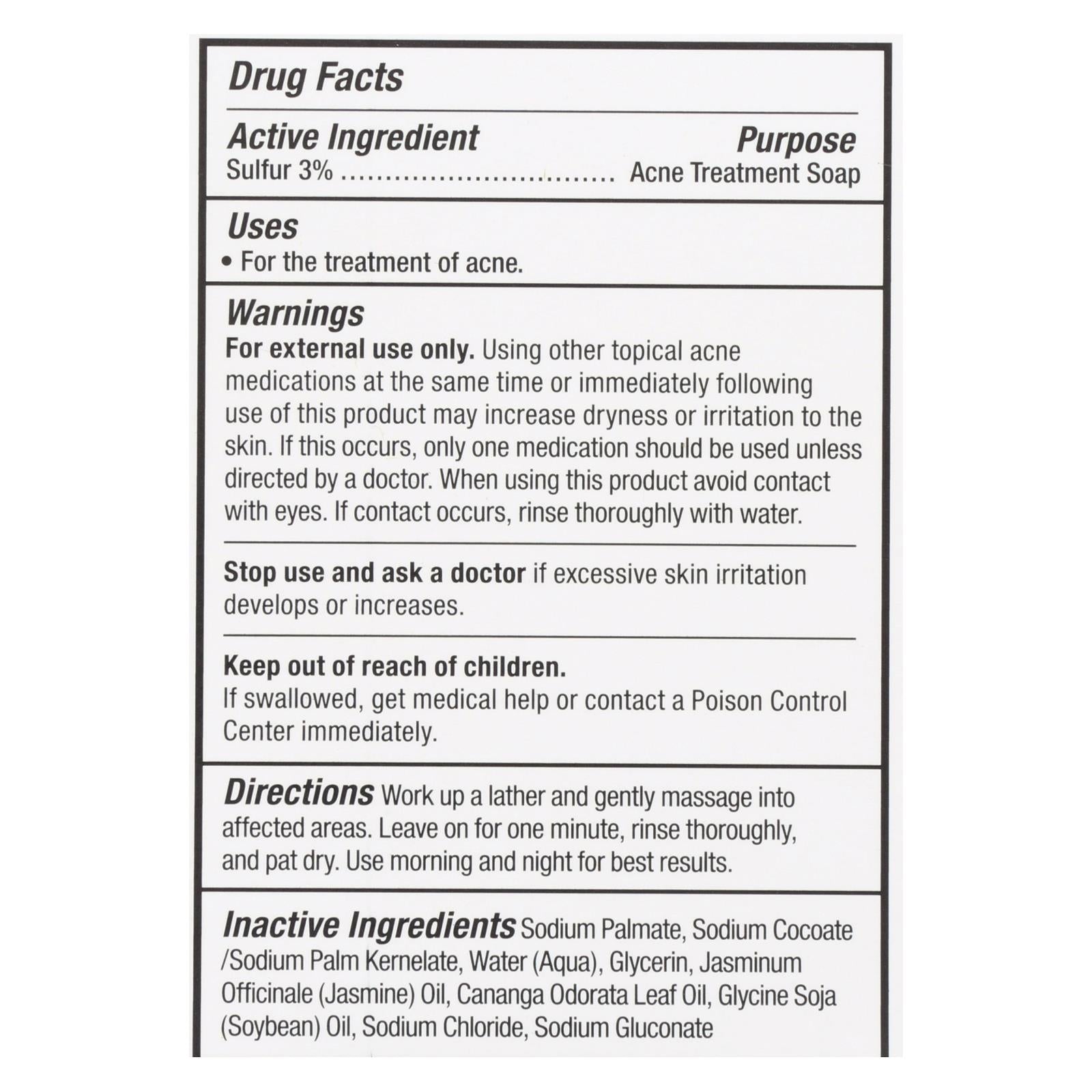 - Contains natural sulfur for acne treatment