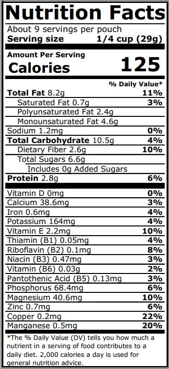 Our granola is NOT cooked, baked, or denatured in any other way. Rather, we gently dehydrated it to preserve its fiber, protein, Omega 3, flavanols, vitamins, minerals and enzymes. These are the important micronutrients that naturally occur in the wholesome ingredients we use.