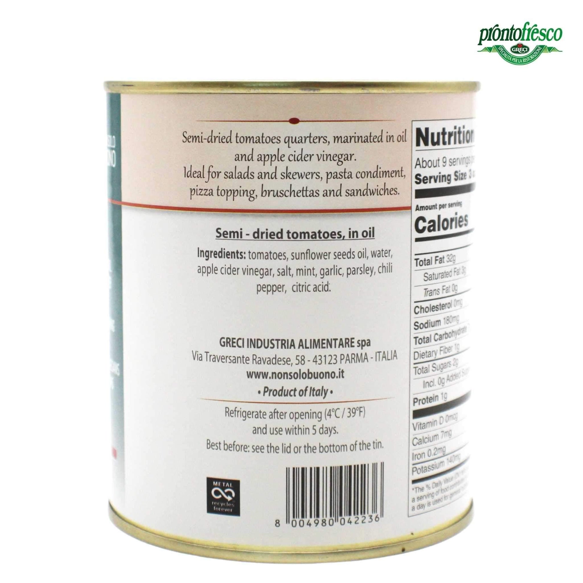 [short_description]Semi-dried tomatoes quarters, marinated in oil and apple cider vinegar. Ideal for salads and skewers, pasta condiment, pizza toppings, bruschetta, and sandwiches.[/short_description] [product_description]
