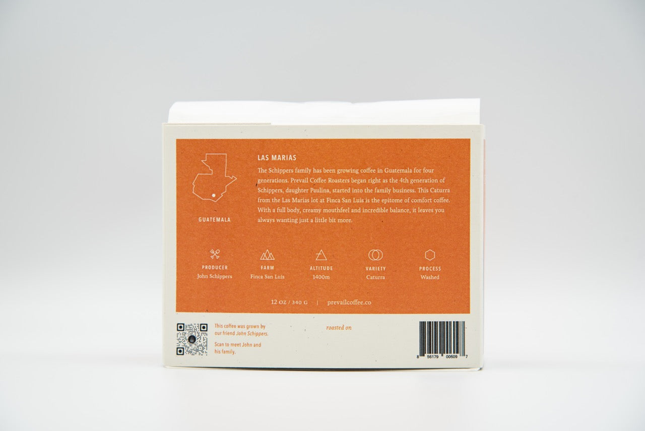 John Schippers of Finca San Luis in the Santa Rosa Department of Guatemala is a 3rd generation coffee grower. He and his wife, Regina raised their two daughters, Paulina and Daniela amongst the coffee shrubs and beneficios of Western Guatemala. The sisters have grown to become the 4th generation of Schippers in the coffee industry, as they work to bring their father’s coffee to the US through their company, Dos Niñas Coffee Importers. Prevail and the Schippers family have shared a special connection for years. The children of Prevail’s founders, Wade and Megan Preston, affectionately refer to the Schippers sisters as “Tía Paulina” and “Tía Daniela”, making this offering truly a family affair.