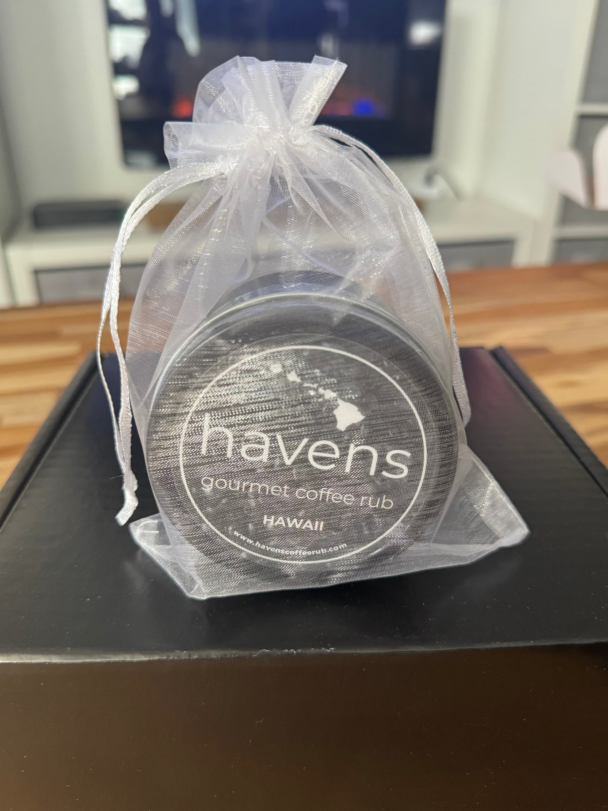 Havens Gourmet Coffee Rub made with Hawaiian roasted coffee brings out the flavor of your meal. 5 oz will season approximately 18-22 cuts of meat based on size.