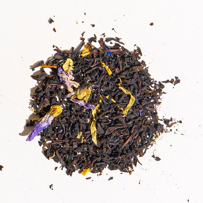 Luxury Ingredients: Black tea, Calendula + Sunflower + Cornflower + Mallow petals, Natural flavors, Nut oil (Almond, Hazelnut)