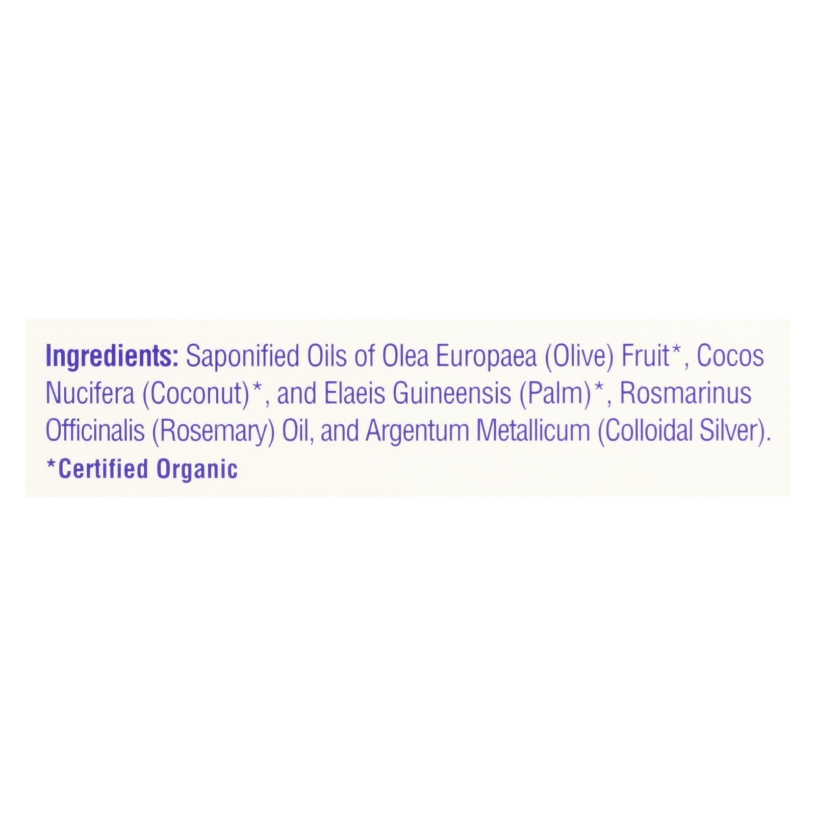Discover the refreshing purity offered by this meticulously crafted soap, perfect for those who value natural skincare. Each bar is imbued with colloidal silver, renowned for its renowned cleansing properties. Sourced from the United States, this vegan-friendly soap combines saponified oils from olive, coconut, and palm, along with rosemary oil, ensuring a gentle yet effective cleanse.