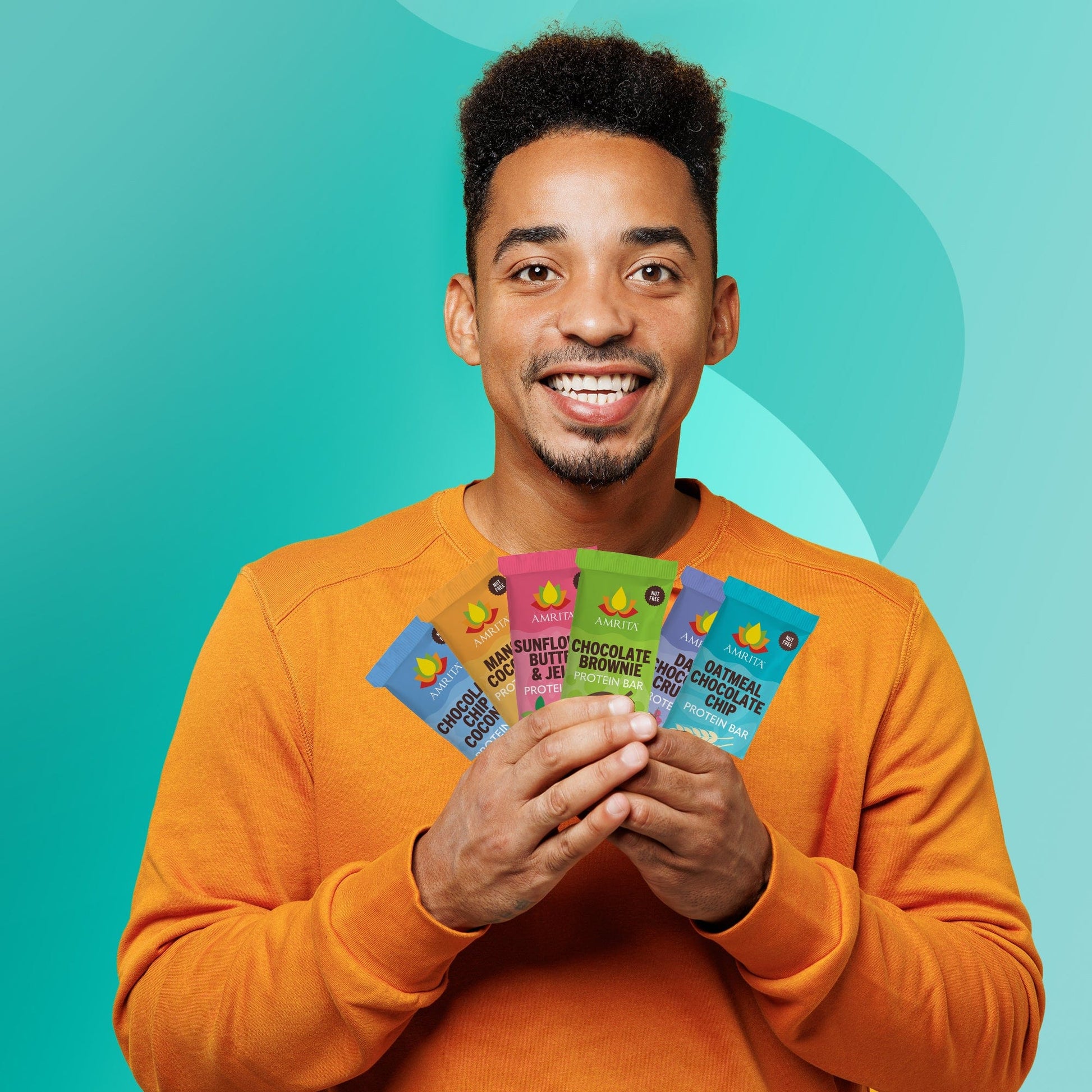 Our best-selling High Protein Variety Pack contains 2 bars of each of the 6 flavors - Apple Cinnamon, Mango Coconut, Sunflower Butter and Jelly, Dark Chocolate Crunch, Chocolate Brownie, and Chocolate Chip Coconut. All bars contain 11g to 12g of plant protein and 10 g of fiber.