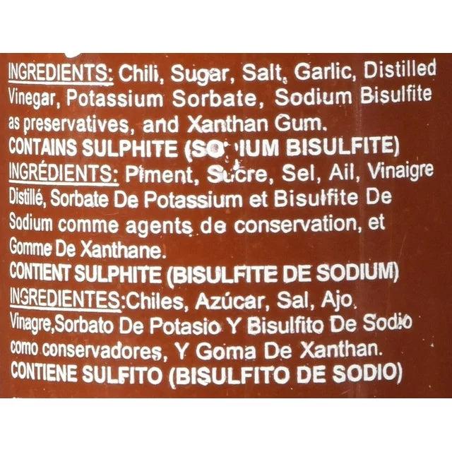 Details: Sriracha, made from sun ripened chilies, is ready to use in soups, sauces, pasta, pizza, hot dogs, hamburgers, chow mein or on anything to add a delicious, spicy taste. Made in U.S.A.