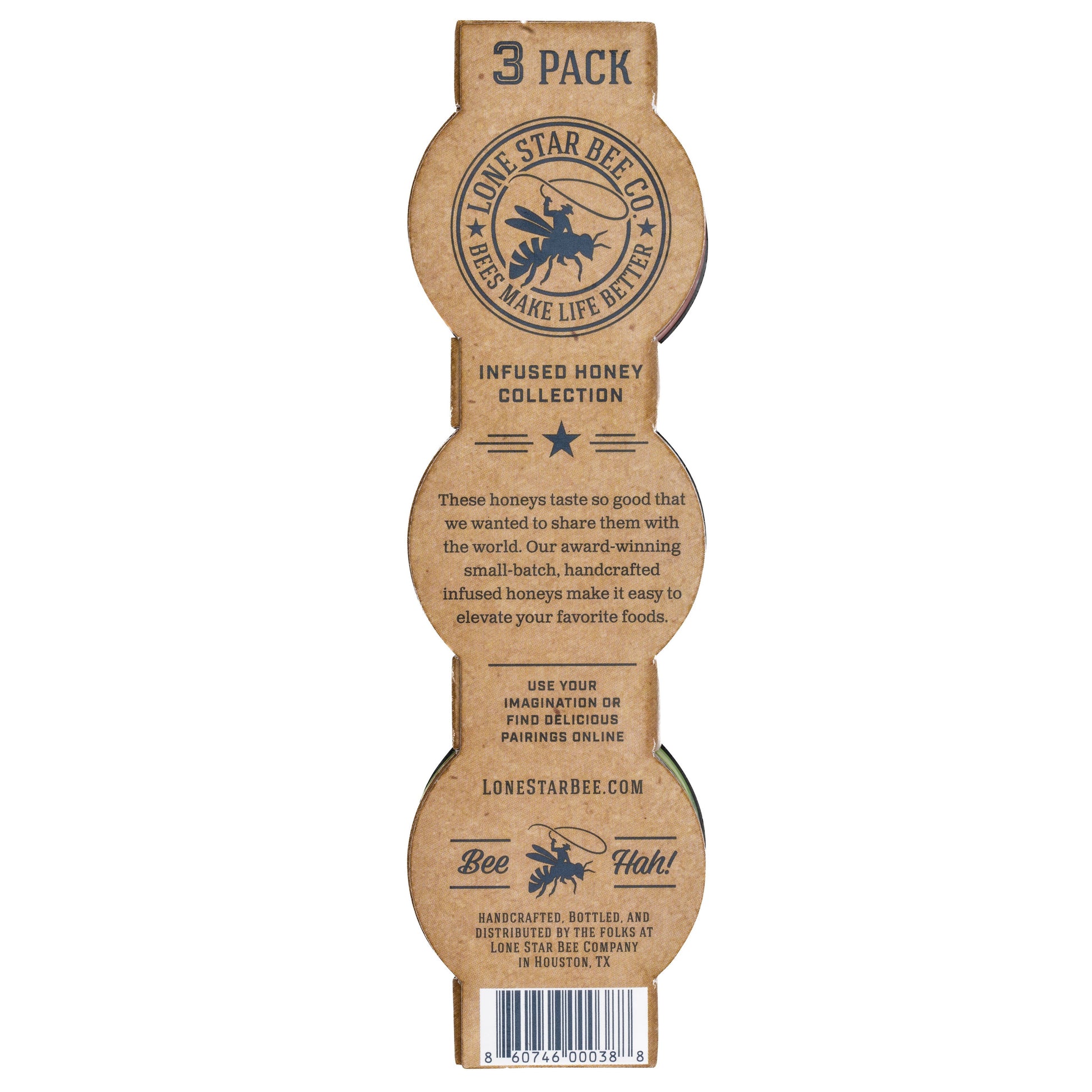 Here’s the perfect gift your shoppers are looking for. The Infused Honey 3-Pack collection highlights our three award-winning uniquely infused honeys in 3-ounce jars. Folks will enjoy the taste of our Fiery Sweet Mesquite honey, Tuscan Blue Rosemary & Pepper honey, and Lucky Lime & Sea Salt honey in this unique collection. A fantastic selection of infused honeys to accompany any charcuterie or cheese board.