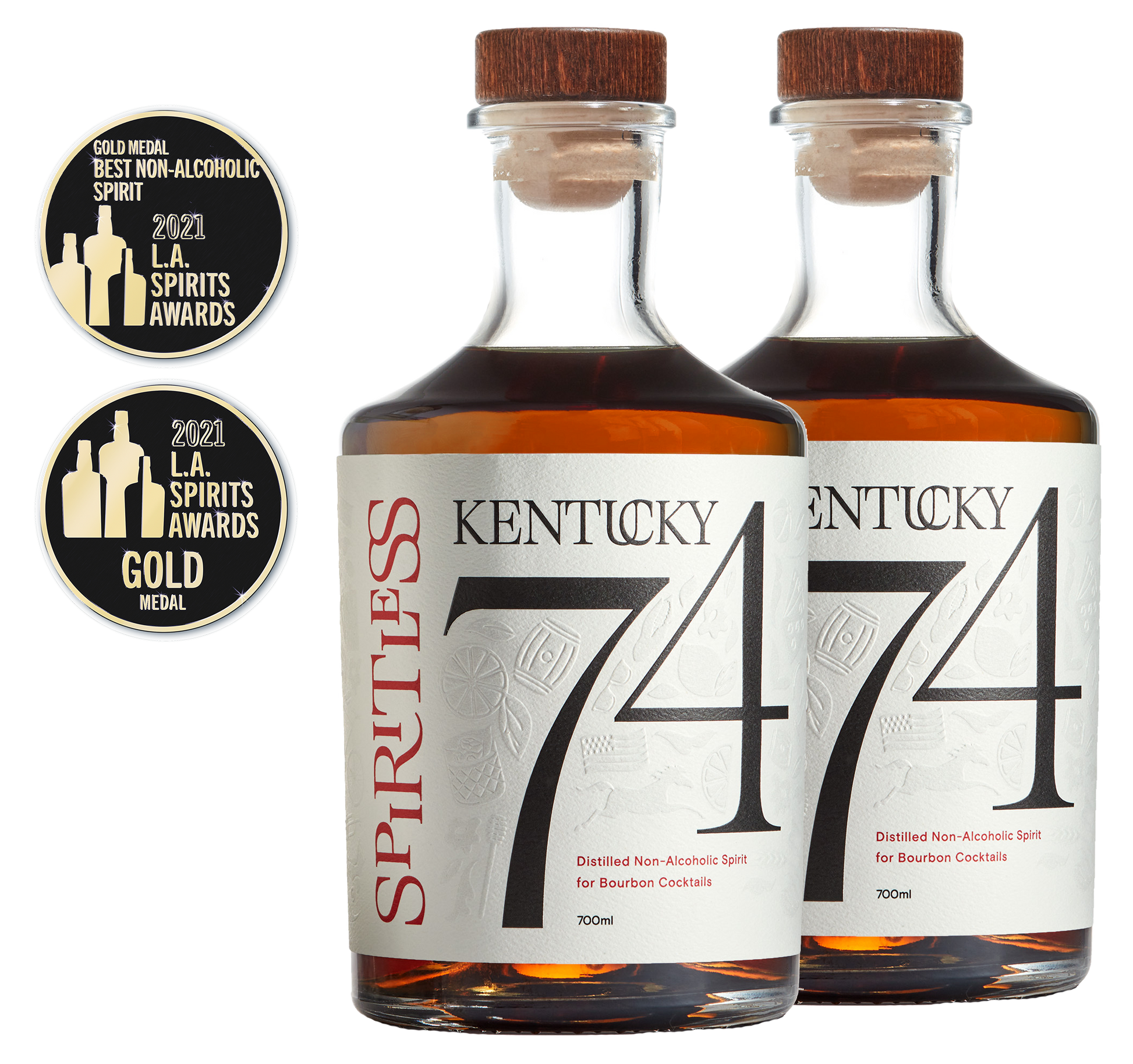Our Kentucky 74 is a beautifully distilled non-alcoholic spirit for bourbon cocktails. Kentucky 74 is crafted using our proprietary reverse distillation process. Kentucky 74 was named Best Non-Alcoholic Spirit and won a gold medal in the second annual L.A. Spirits Awards.