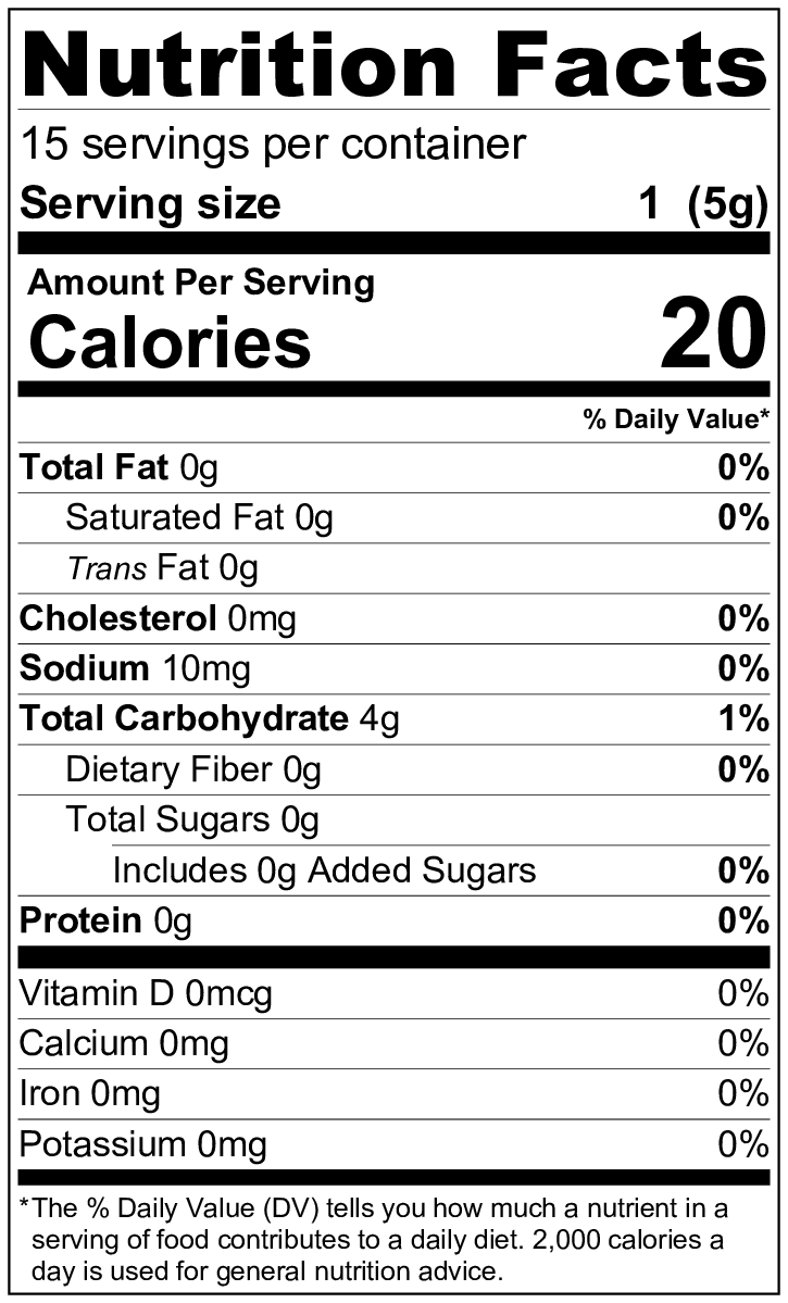 - Weight/ bag: 2.8 OZ (82g)