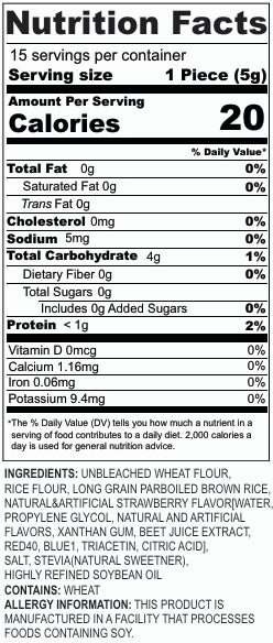 - Unbleached Wheat Flour, Rice Flour, Long Grain Parboiled Brown Rice, Natural & Artificial Strawberry Flavor[Water, Propylene Glycol, Natural and Artificial Flavors, Xanthan Gum, Beet Juice Extract, Red40, Blue1, Triacetin, Citric Acid], Salt, Stevia(Natural Sweetener), Highly Refined Soybean Oil