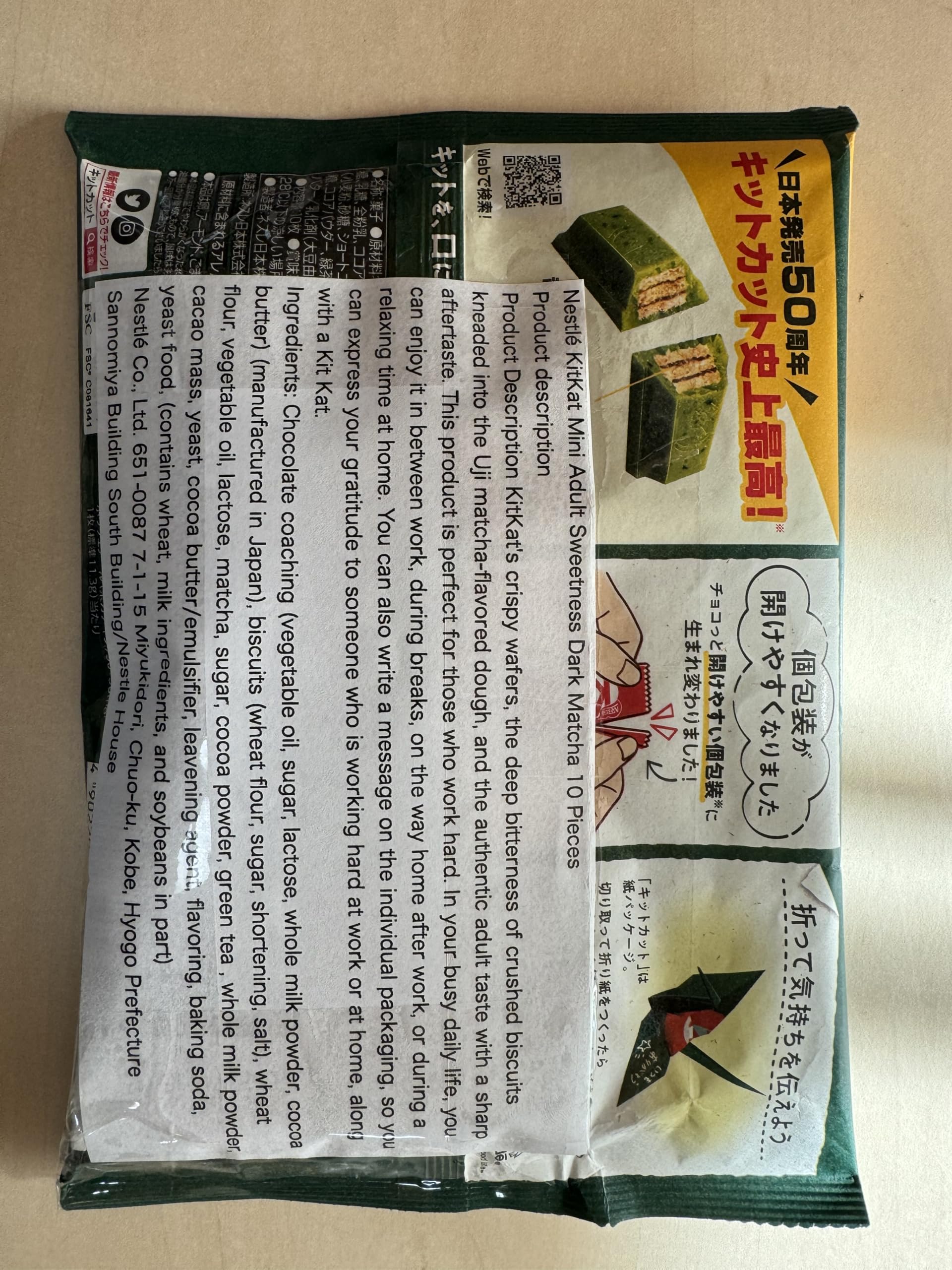 Kit Kat NESTLÉ Mini Chocolate Bar Adult Sweetness Dark Matcha 10pcs