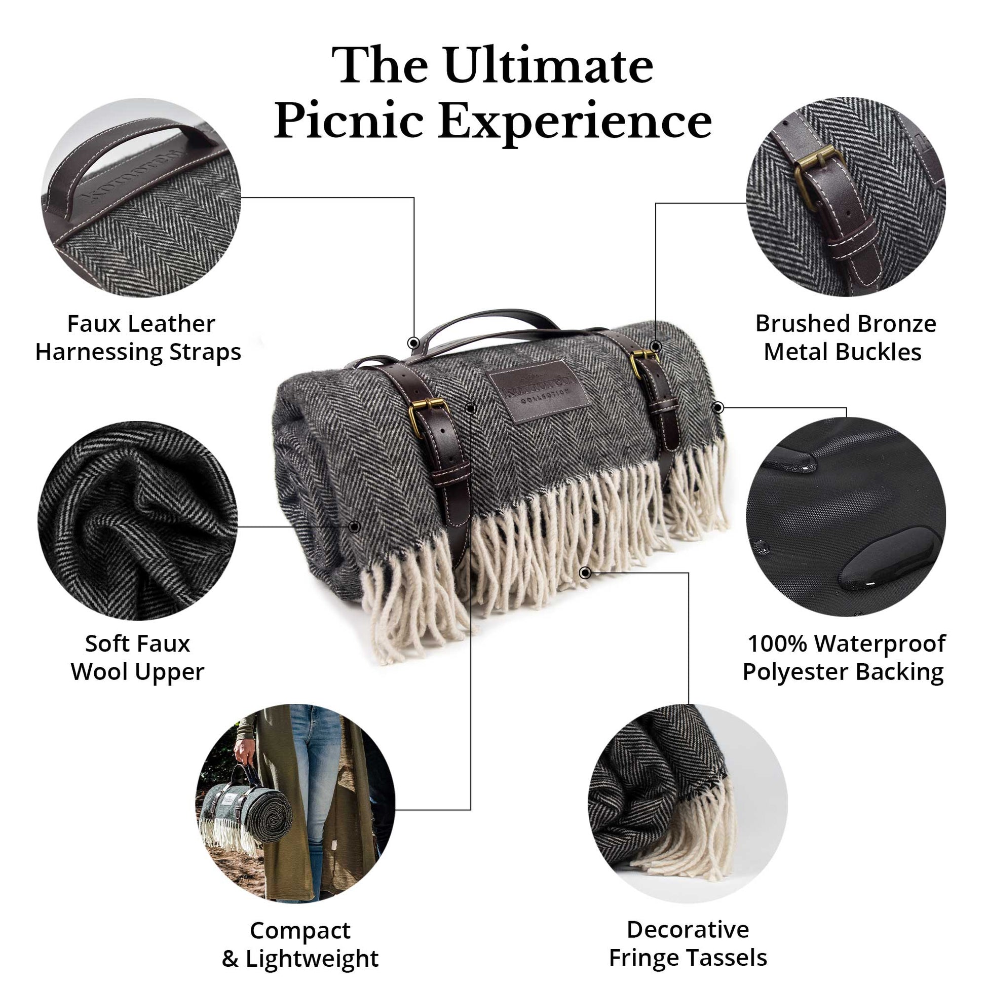 Komorebi Herringbone Picnic Blanket by Komorebi wholesale product delivery near me | | Fulfilled by our friends at KomorebiThis luxurious Herringbone Picnic Blanket is perfect for any outdoor adventure. Designed with a classic herringbone pattern in soft faux wool, it cushions your bottom and keeps your picnic dirt-free. The 100% waterproof backing ensures durability and dryness. With faux leather harnessing straps and a carry handle, it easy to transport. Stylish brushed bronze metal buckles and chestnut brown leather straps complement the deep grey herringbone design, adding sophistication to your picnic. Get this high-quality blanket for a comfortable and enjoyable picnic experience.Features & BenefitsSoft faux wool upper 100% waterproof polyester backing Faux leather harnessing straps Brushed bronze metal buckles Chestnut brown leather straps Measuring 78” x 59” flatMeasuring 16" x 8" rolled upWeighs 3.7 lbs 12 months manufactures warrantyFAST & FREE deliver..