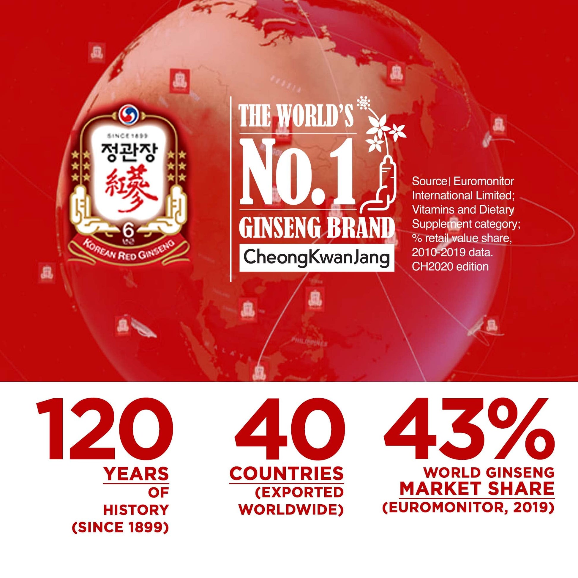 - CheongKwanJang - No.1 GINSENG BRAND IN THE WORLD - When it comes to a product like ginseng, you do not want to go with a no-name internet brand. KGC(CheongKwanJang) has been considered the top brand in the world for 120+ years! CheongKwanJang has perfected the Korean Red Ginseng creation process from soil cultivation to production to create the best ginseng product for you. Our master ginseng researchers ensure that only the best ginseng roots are harvested and used for production.