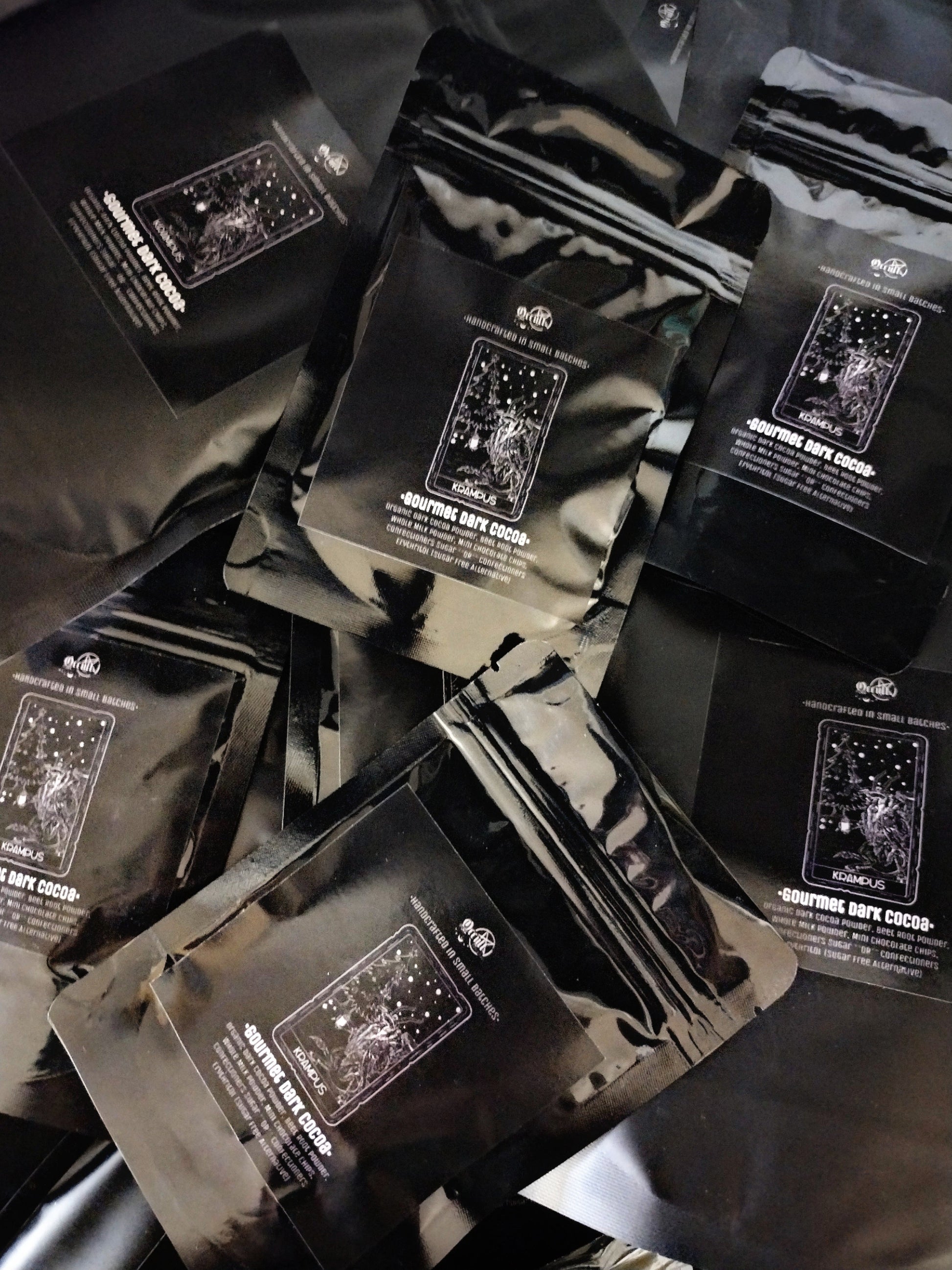 Krampus Cocoa is a decadent, gourmet dark cocoa blend; featuring a rich organic coca powder, whole milk powder, confectioners sugar, mini chocolate chips, and beet root powder for a red hue to your cozy beverage. Beets stimulate blood capillaries to promote good blood flow; so it's a "healthy" treat! If you prefer a sweeter cocoa, we recommended topping with whipped cream.