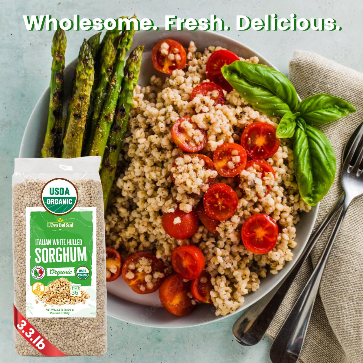 Bring a touch of Italian tradition and wholesome nutrition to your kitchen with L’Oro Del Sud Organic Italian White Hulled Sorghum – delicious, versatile, and naturally nourishing.