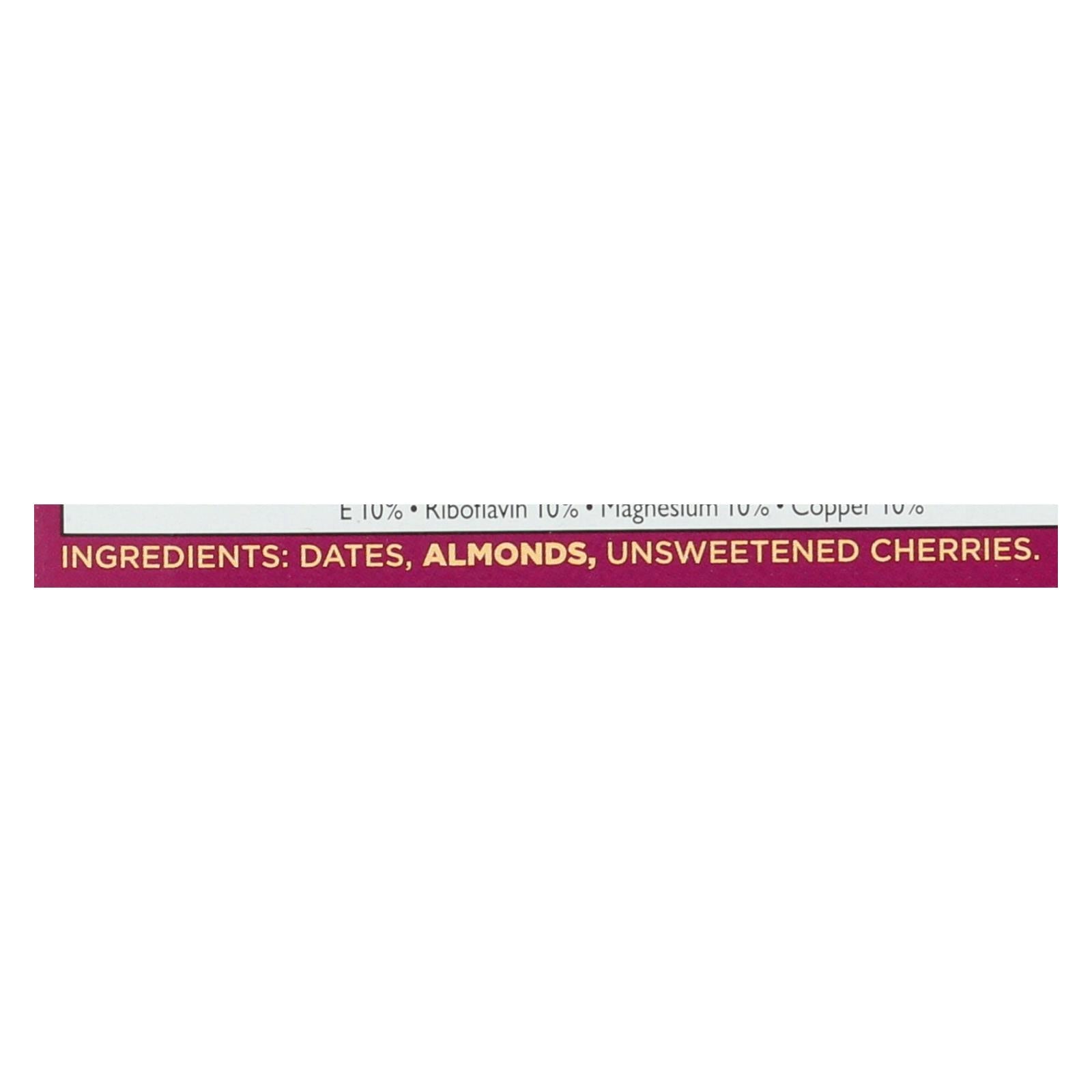 Satisfy your cravings with a deliciously simple snack that packs a punch of natural flavor. This cherry pie bar is crafted from just three wholesome ingredients: dates, almonds, and unsweetened cherries. Perfect for those who value purity and taste, these bars are non-GMO project verified, kosher certified, and contain no added sugars.