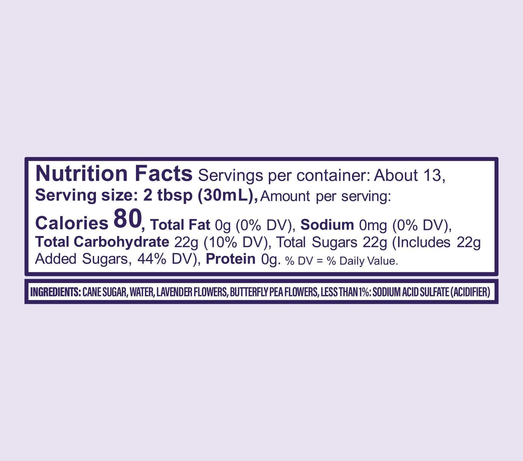 Transform your favorite beverages with our Lavender Syrup, made with pure cane sugar, French lavender buds, and butterfly pea flowers.