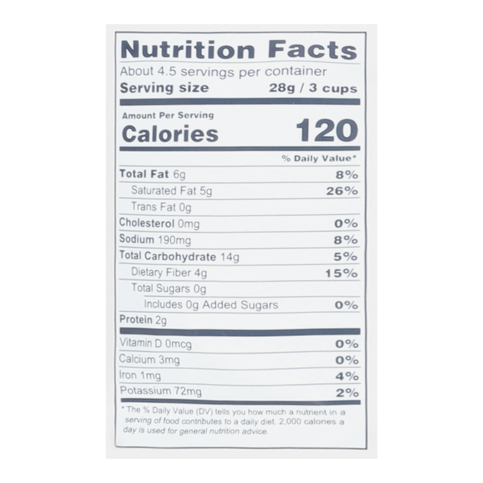 - Made with organic, non-GMO popcorn and extra virgin coconut oil.