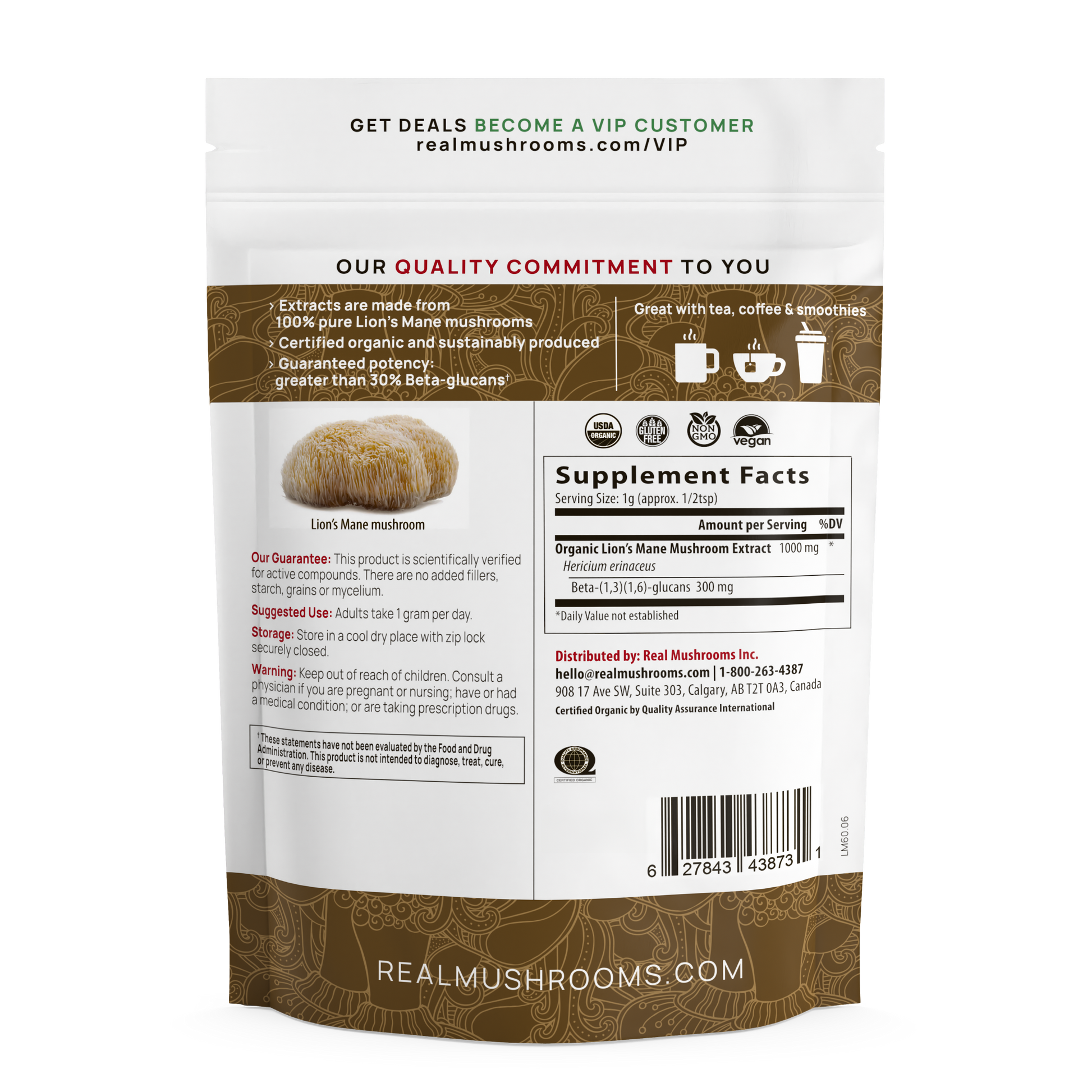 - Hot water extracted from 100% Lion's Mane mushrooms