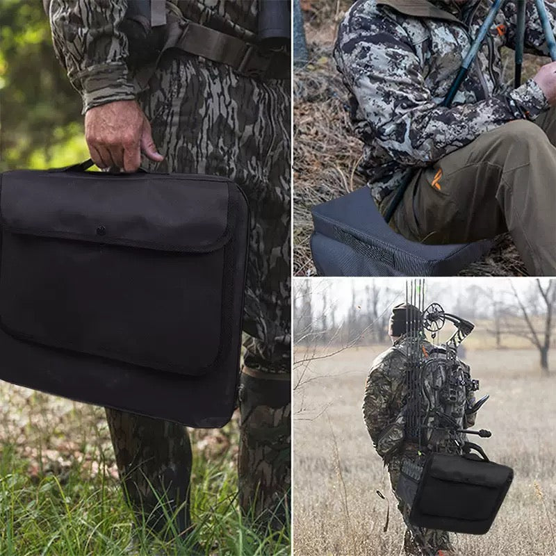 Designed for portability, the cushion is lightweight, foldable, and equipped with a carry handle. A front storage pocket keeps essentials like power banks, phones, gloves, or snacks within easy reach.