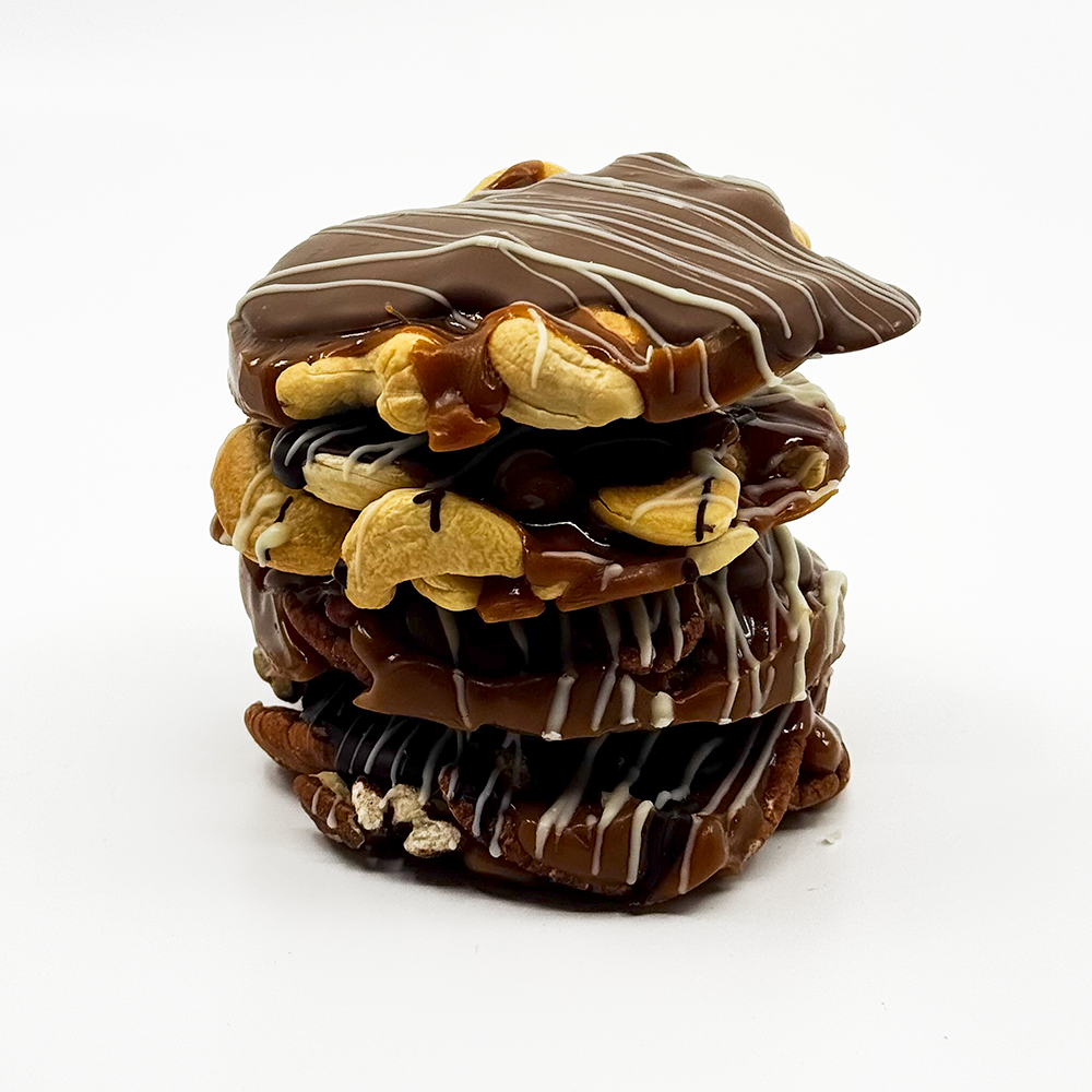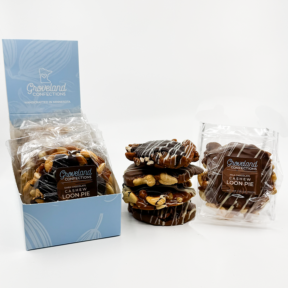 Indulge in the decadence of our Loon Pies. Made with creamy caramel, rich chocolate, and a bed of premium non-gmo nuts, each bite is a perfect balance of flavor and texture. Unwind and treat yourself to the indulgent taste of our Loon Pies.