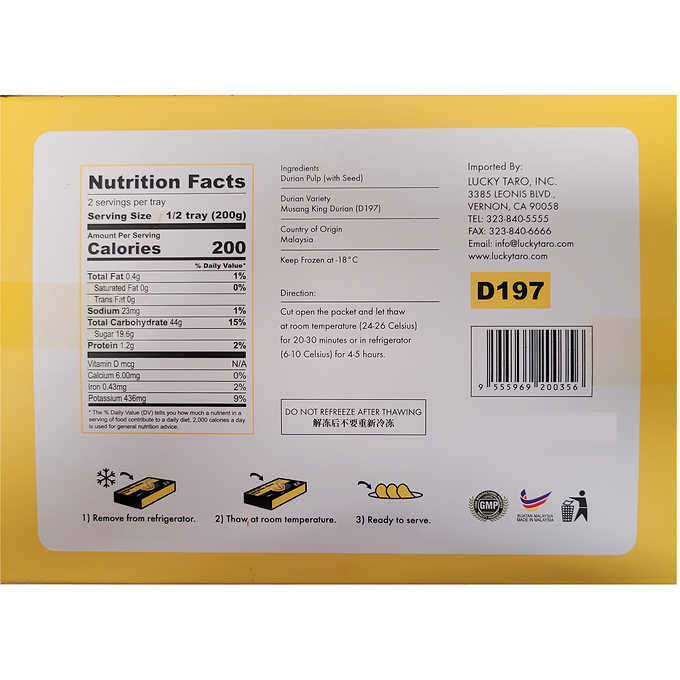 Lucky Taro Premium Musang King Durian Pulp, 14 oz