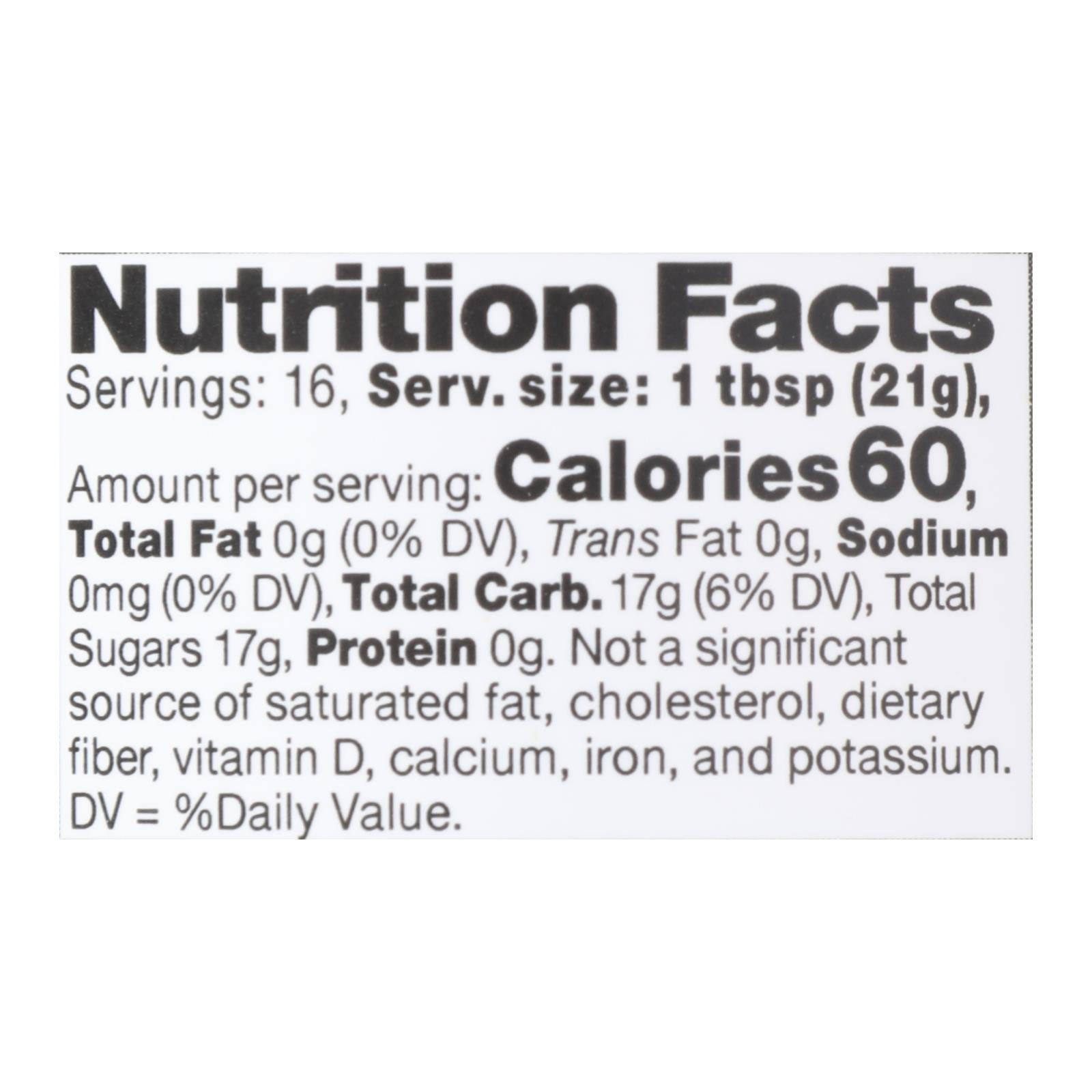 Enjoy the purity and quality of organic honey that is GMO-free and kosher certified. Check the nutrition facts panel for any allergens or safety warnings. Embrace the natural sweetness of this lovely honey bear!