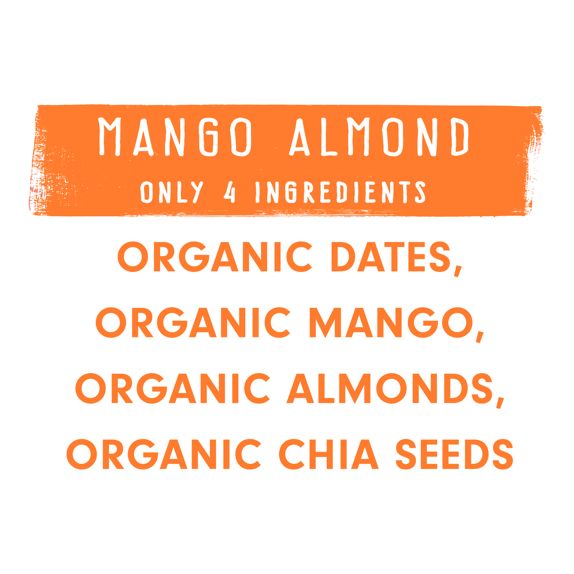 Only 5 Ingredients: Organic Dates, Organic Mango, Organic Almonds, Organic Chia Seeds