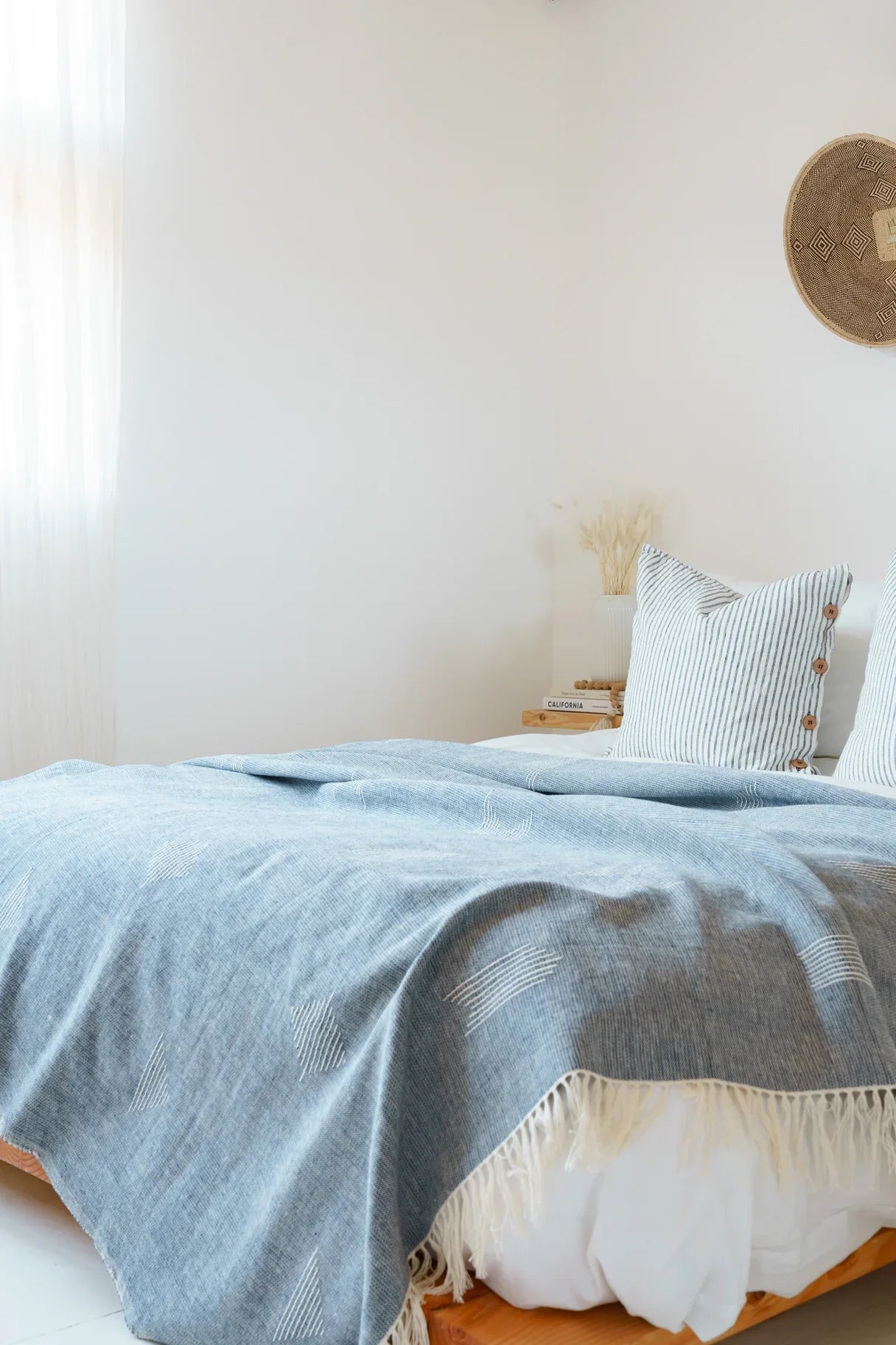 Named after it's artisan maker, Martinez is second generation of the family run workshop that hand weave these versatile blankets on the flying shuttle loom in Mitla, Mexico. They use 100% cotton dyed with sustainable, non-toxic colors. They can be used as a throw over the couch or bed, and are perfect to spread out on the beach or at a picnic.