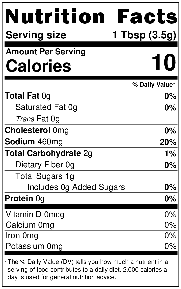 Ingredients: Dextrose, Salt, Autolyzed Yeast, Potato Flour, Pure Vegetable Oil (Sunflower Seed Oil), Carmel Powder, Celery, Onion Powder, Garlic Powder, Herbs, Sucrose
