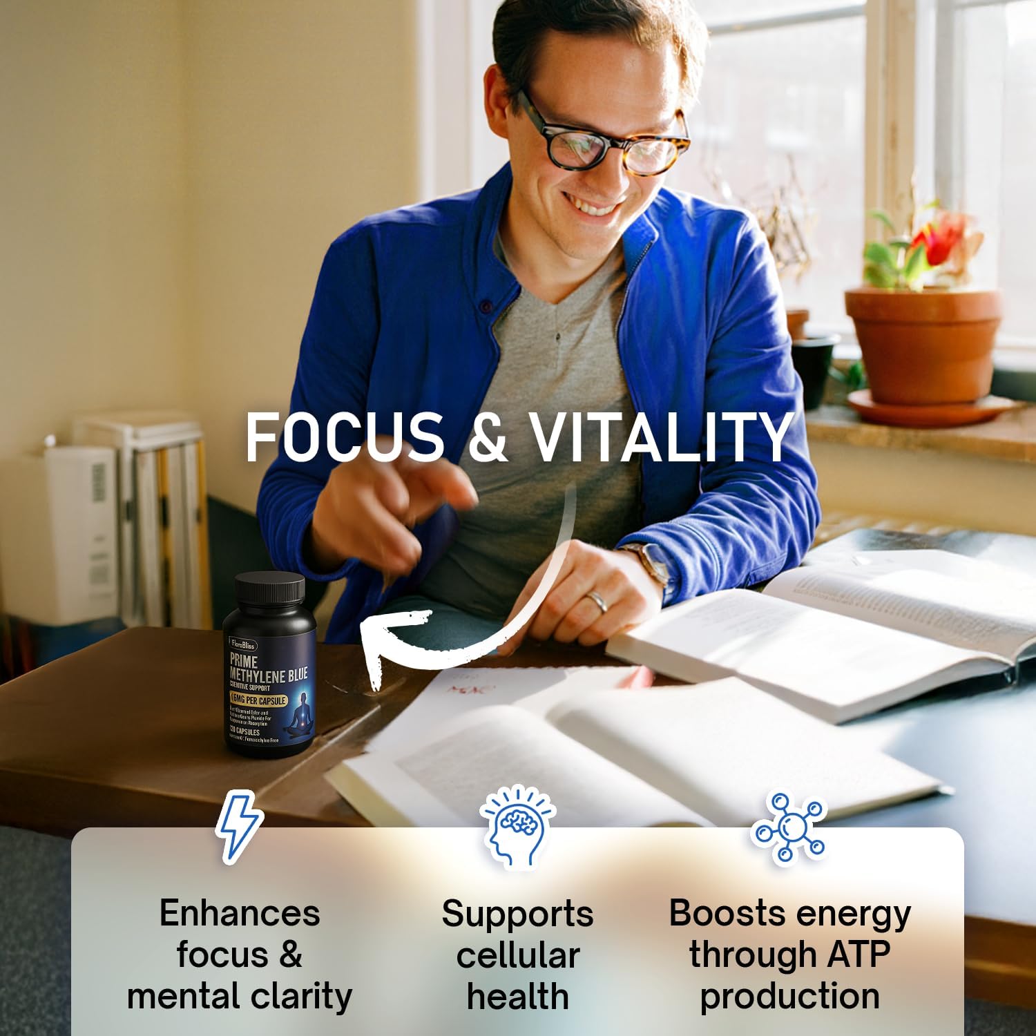 Methylene Blue Capsules - Natural Cacao and Vitamin C Ester for Added Support, Cognitive Supplement